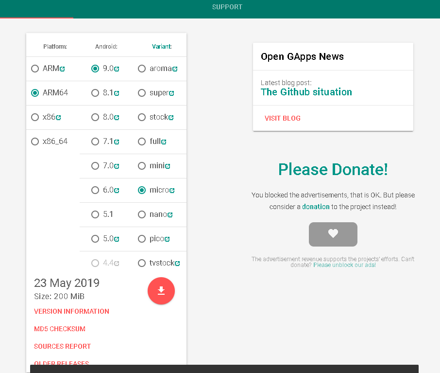 ARM64 9.0 은 고정이고 variant 는 micro 나 stock 버전 다운 받는게 무난 난 구글 프로그램 모두 필요하다 하면 full 버전