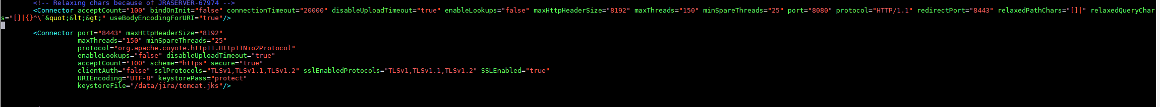atlassian 사이트는 confluence 와 jira 설정이 다르다고 나와 있는데 이렇게 하면 jira 작동이 server.xml 파일 문제 있다고 구동이 안된다. confluence 설정 그대로 꼭 해주자.