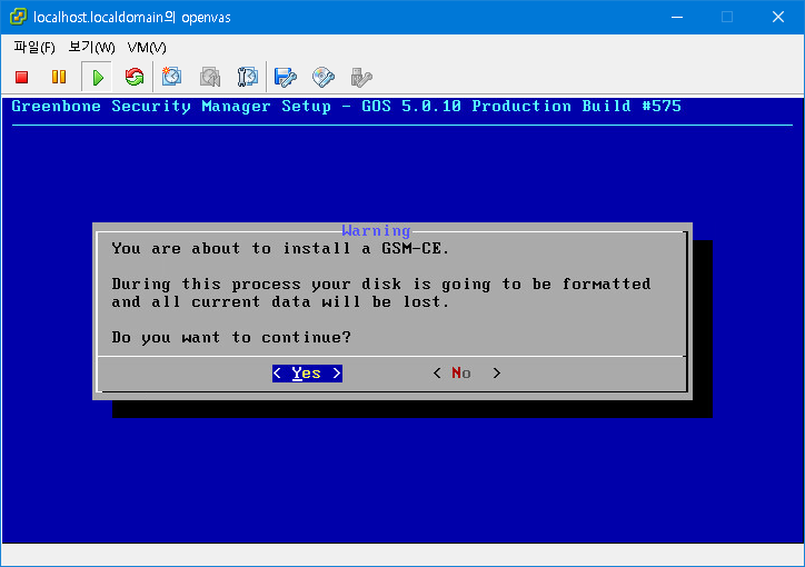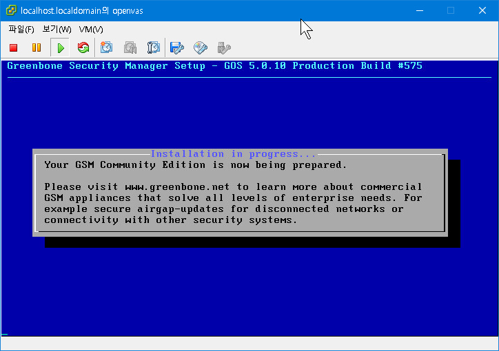 Setup the GCE Version: 5.0.10 Download: https://dl.greenbone.net/download/VM/gsm-ce-5.0.10.iso (465 MB) sha256sum: 378ed39d00b7f565c5858492d63936f58f686e50c46e73179669568a0d6840b6 Compatibility: VirtualBox, ESXi, Hyper-V Minimum requirements: 2 CPU Cores