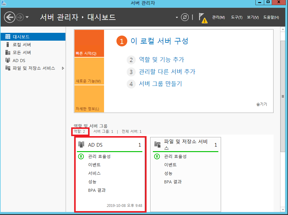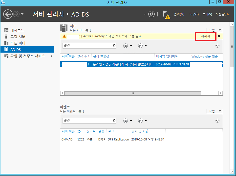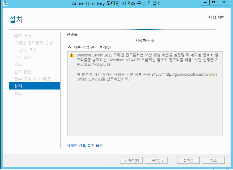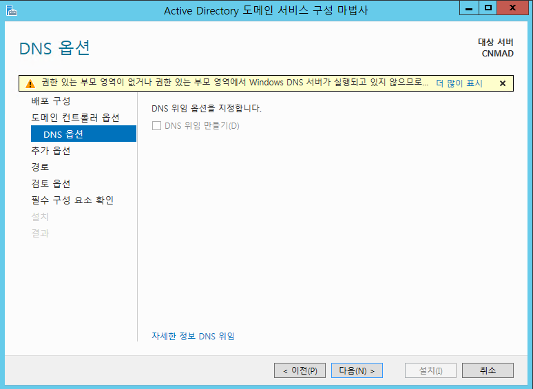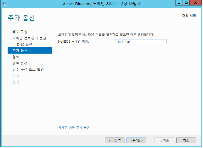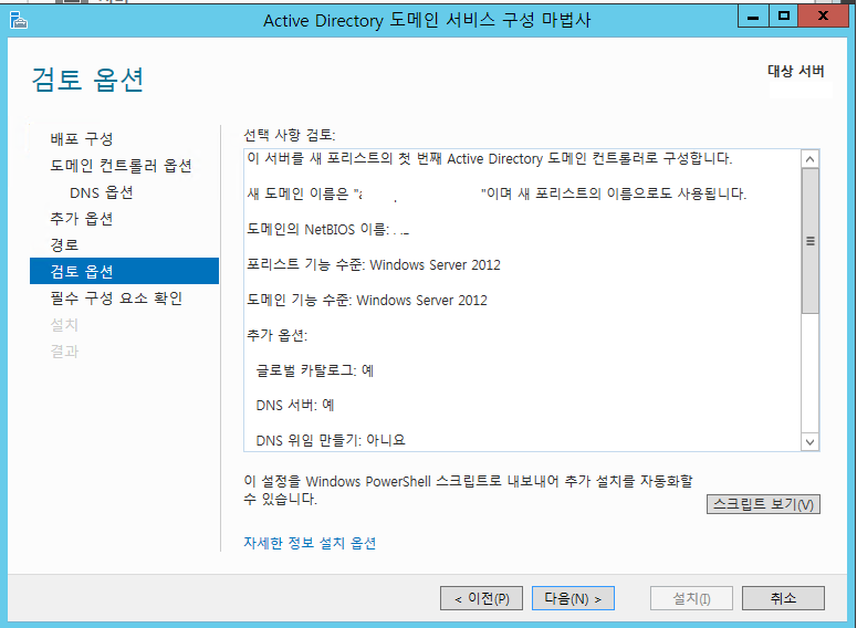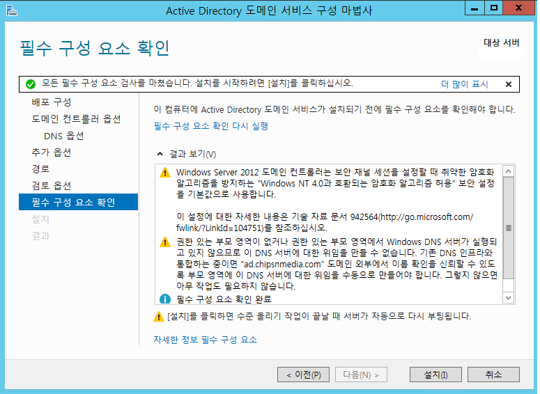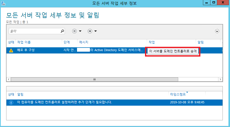 이 서버를 도메인 컨트롤러로 승격 클릭