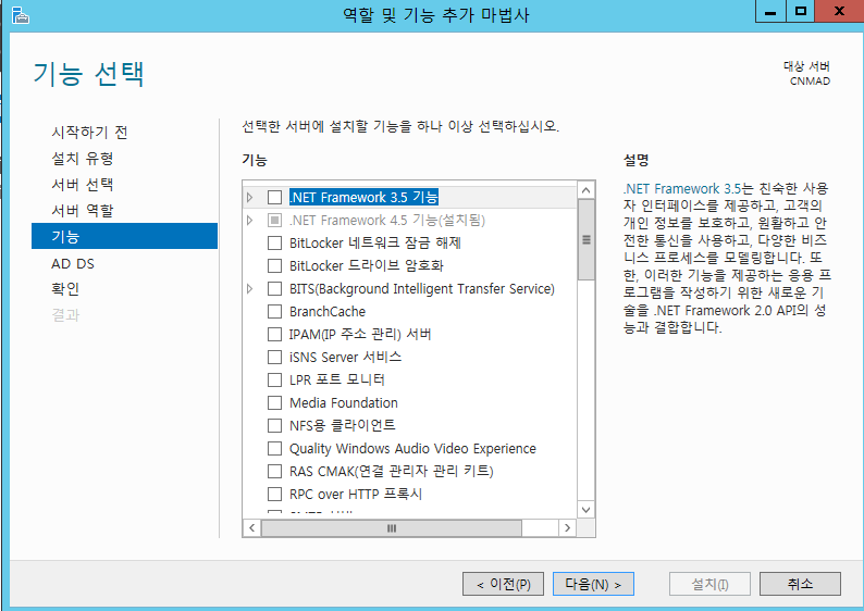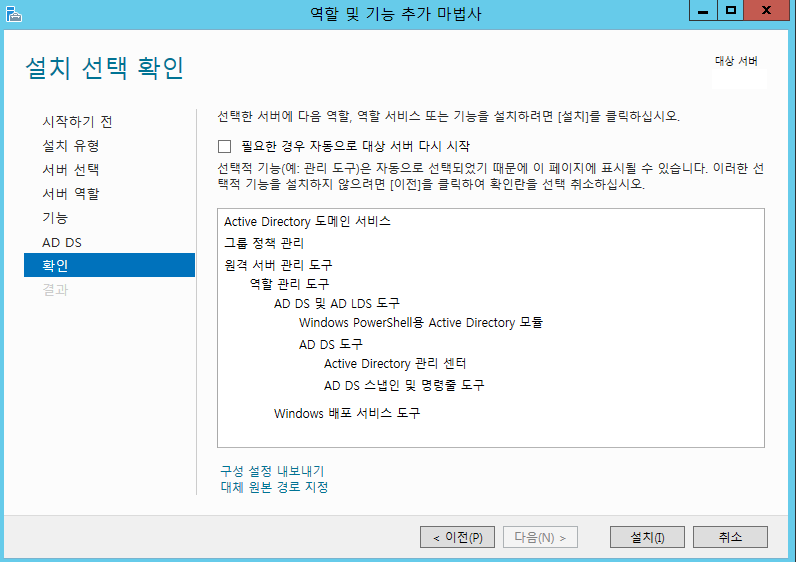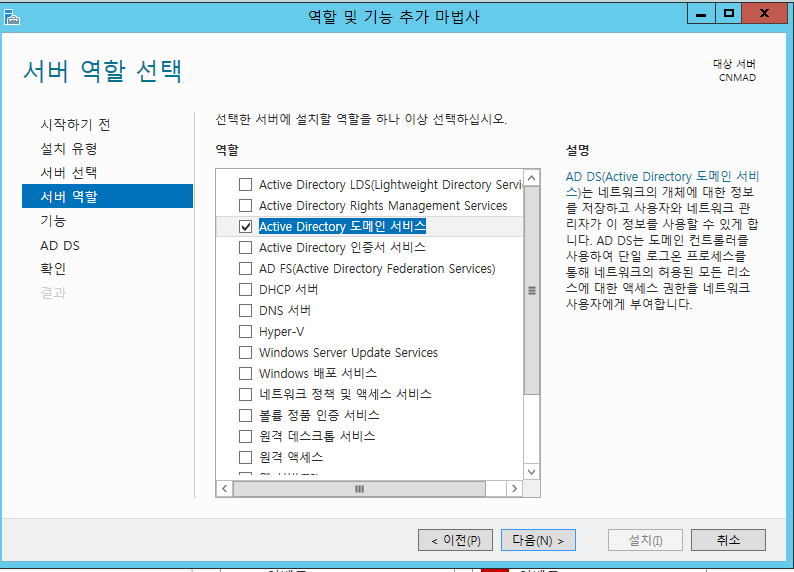 AD 만 설치 / 추가로 원하는게 있으면 설치 하면 됨