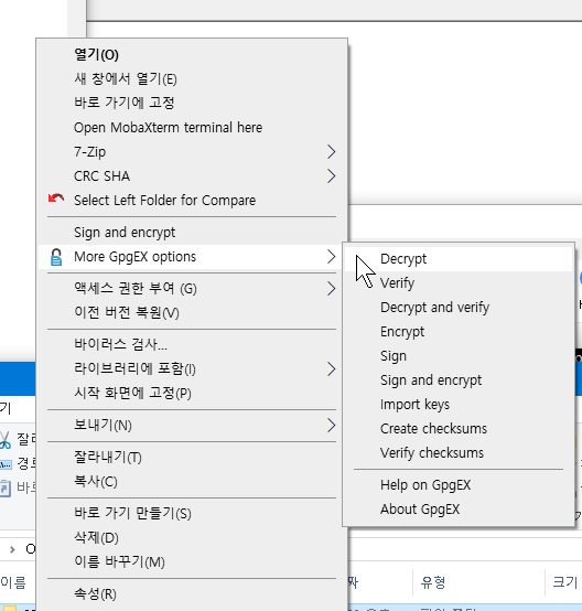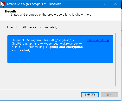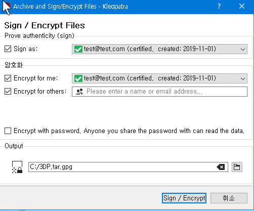 경로 지정하고 sign / encryprt 누르면 진행이 된다.