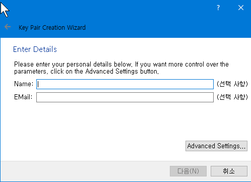 암호 입력(나중에 키값 등록할때 쓰인다.