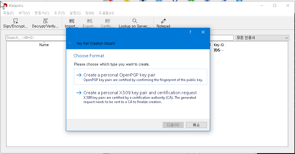 파일 - new key pair creation 클릭