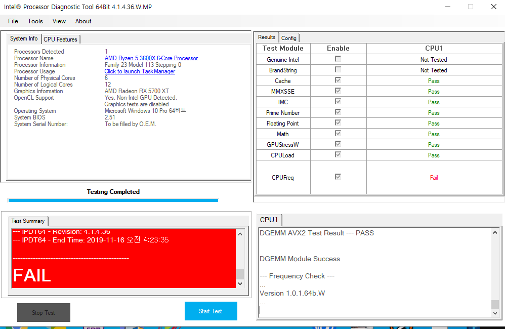 당연 테스트 프로그램이 인텔용 프로그램이라 단순히 참조 용으로 보면 된다.