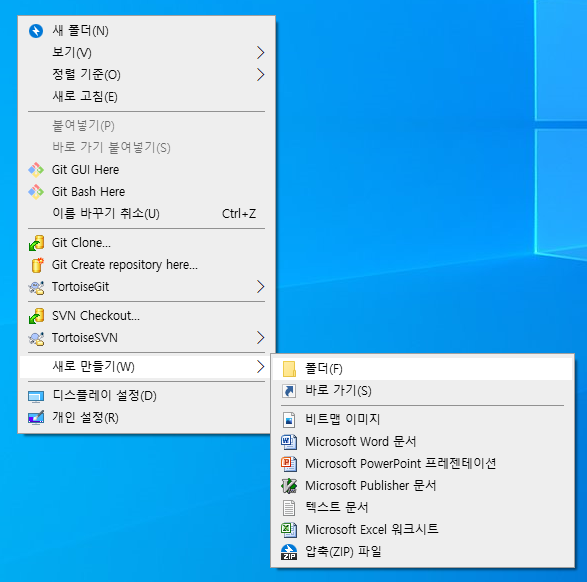 윈도우 바탕화면에 위와 같이 새로만들기 폴더 생성