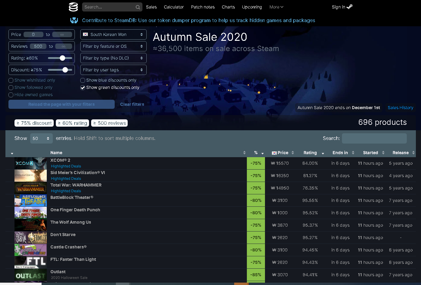 steamdb.info/sales/?min_discount=0&min_rating=0&min_reviews=0