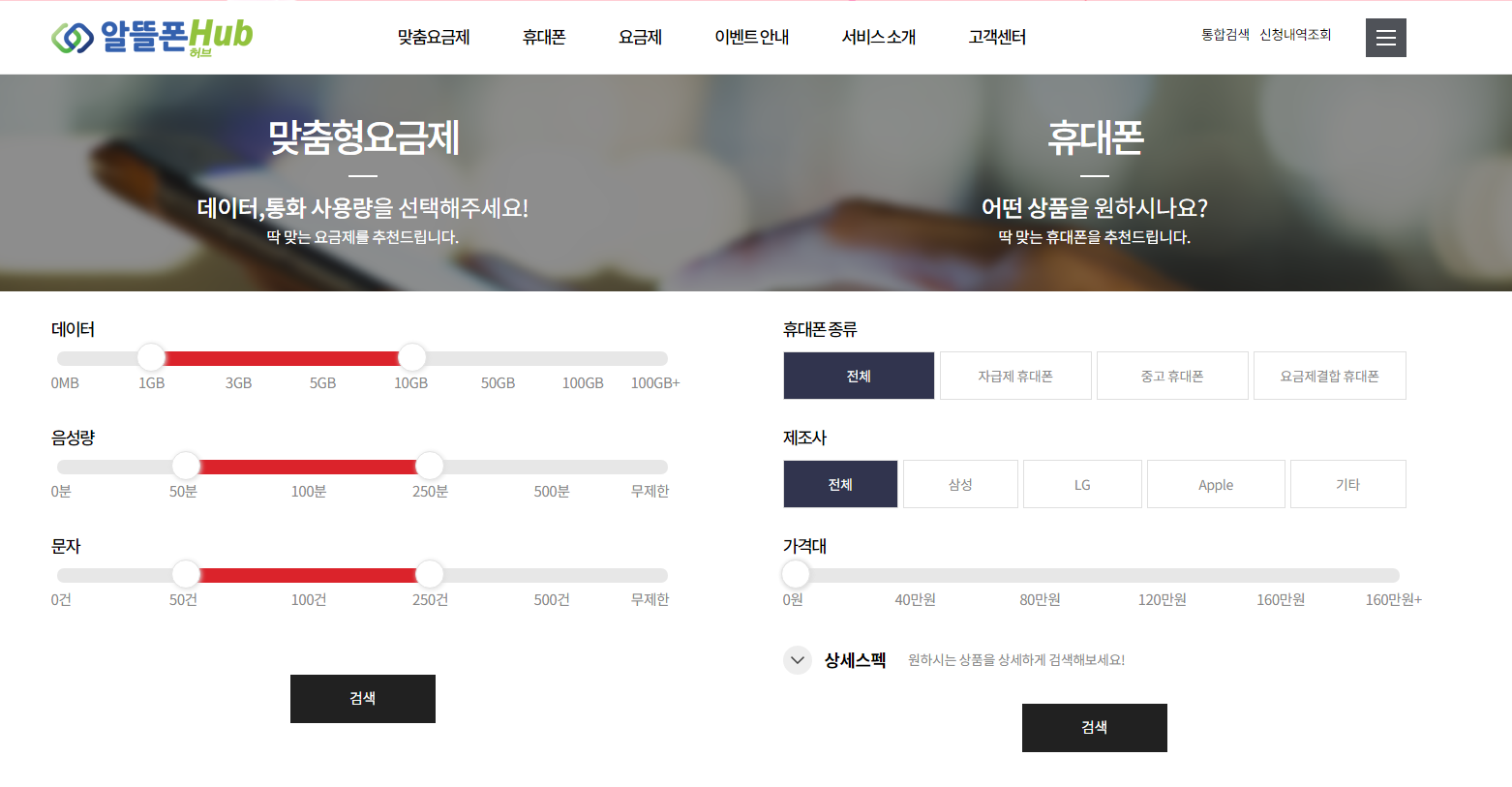 자신의 원하는 데이터 혹은 음성량(?) 오타인가.. 여튼 조회 해보면 알뜰폰 까지 모두다 조회가 가능하다.
