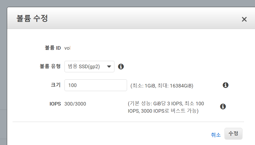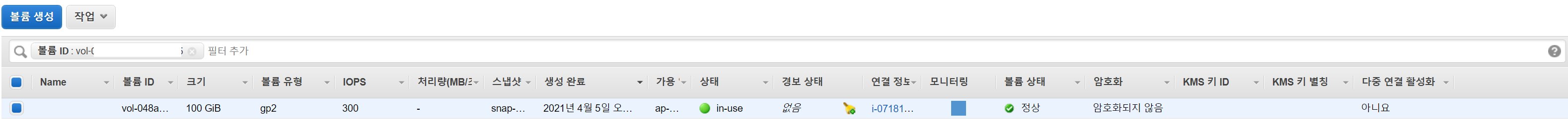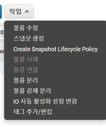 인스턴스 대시보드에 스토리지로 가서 볼륨 ID 를 눌러보자