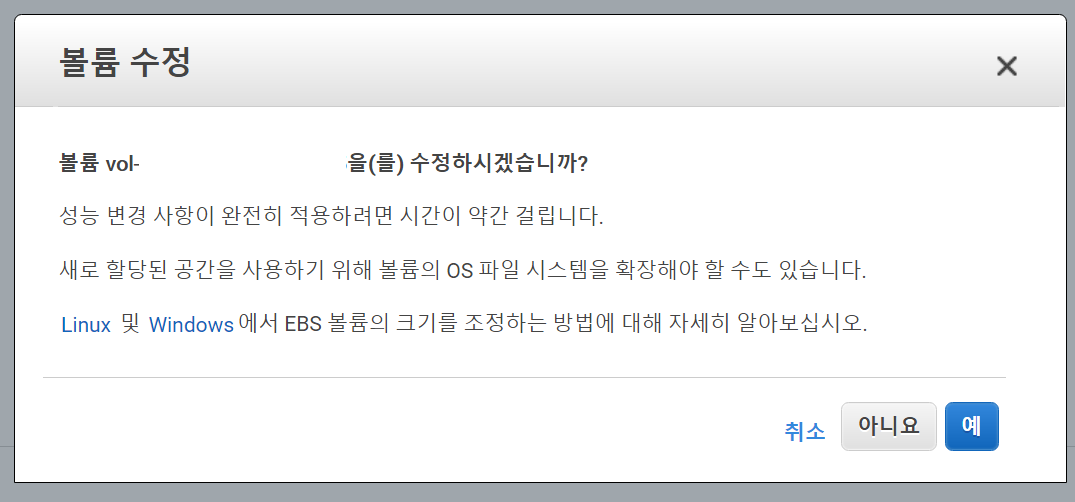 주의 할것은 6시간에 한번씩 작업이 가능하다 용량 늘릴때는 신중하게 늘리자.
