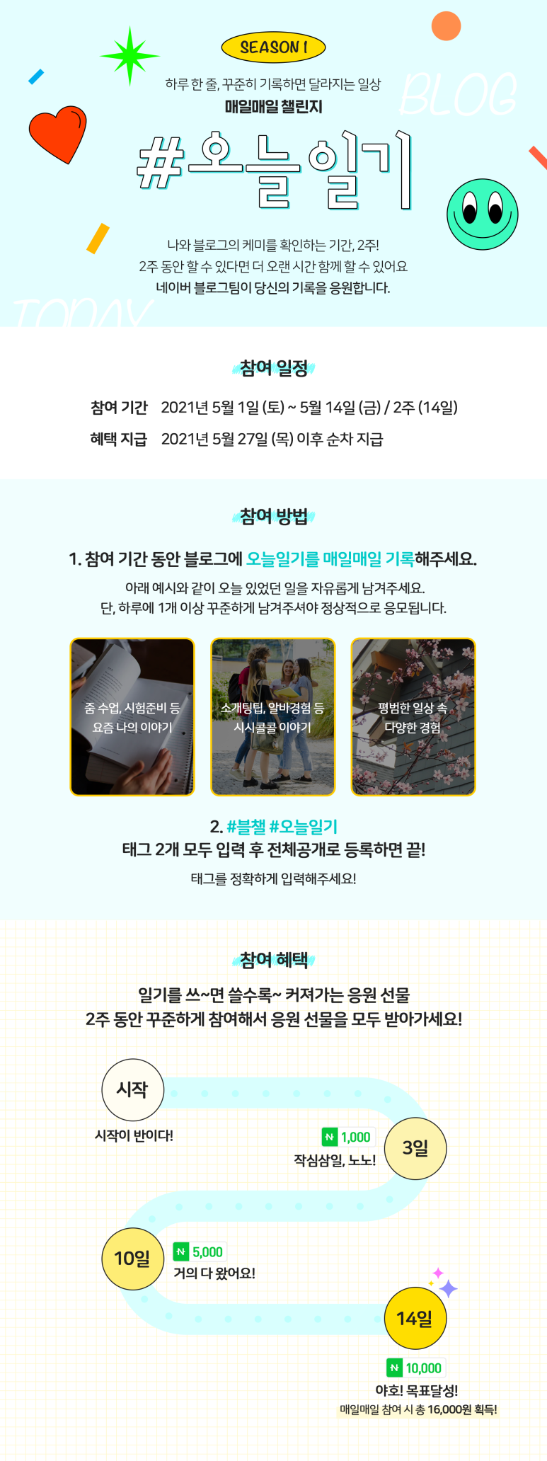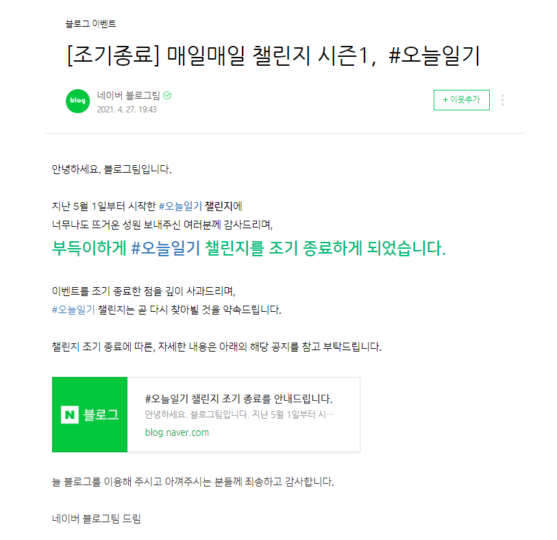 안녕하세요. 블로그팀입니다. 지난 5월 1일부터 시작한 #오늘일기 챌린지에 너무나도 뜨거운 성원 보내주신...