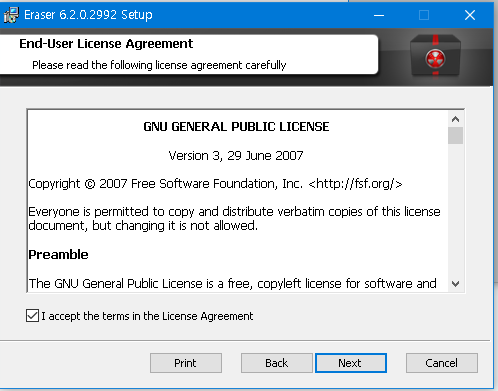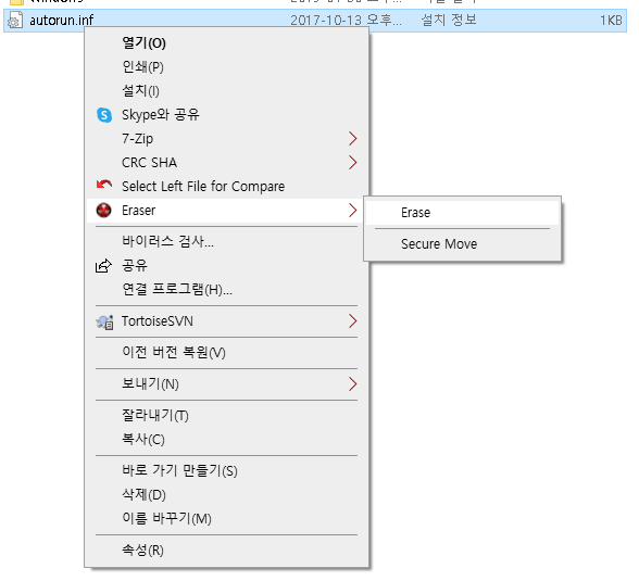 eraser 가 활성화 된다 그래서 영구적으로 삭제 하고 싶다면 마우스 오른쪽 버튼 눌러서 erase 하면 된다.
