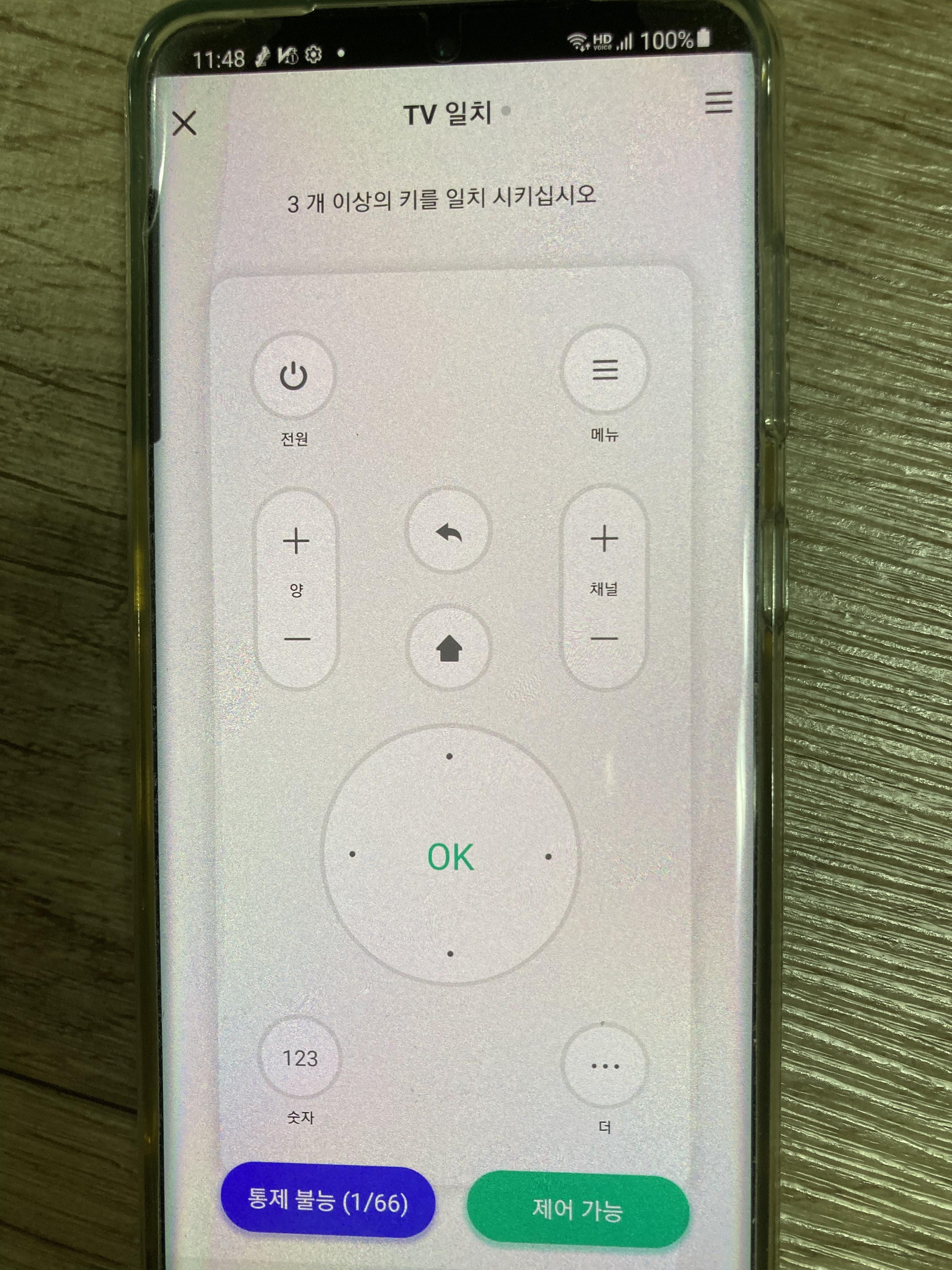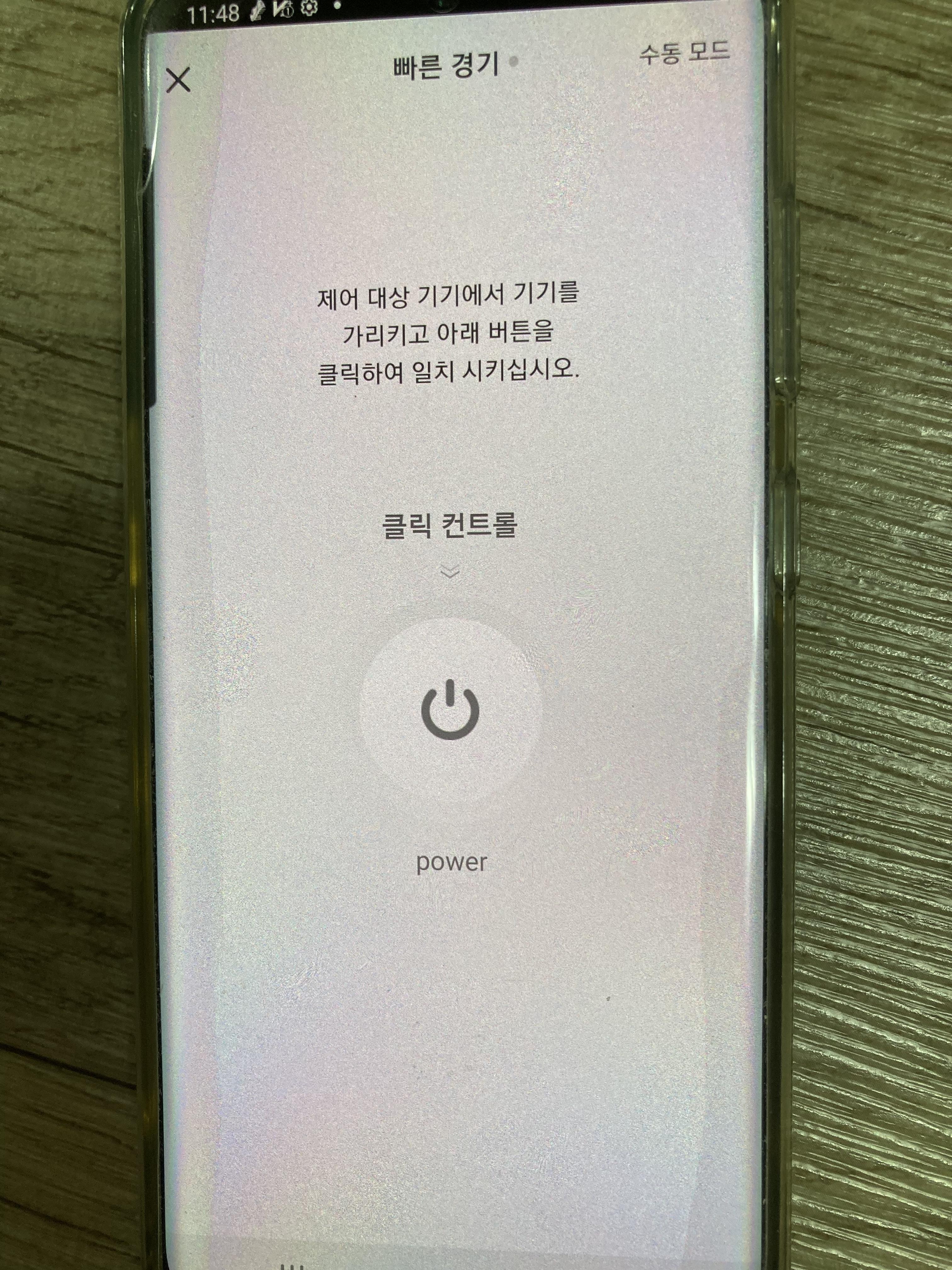 오른쪽 위에 있는 수동 모드로 전환 후 전원 눌러보고 TV가 켜지는지 확인 후 안되면 통제 불능 누르고 지속적으로 하다 보니 35번에서 TV가 켜졌다.