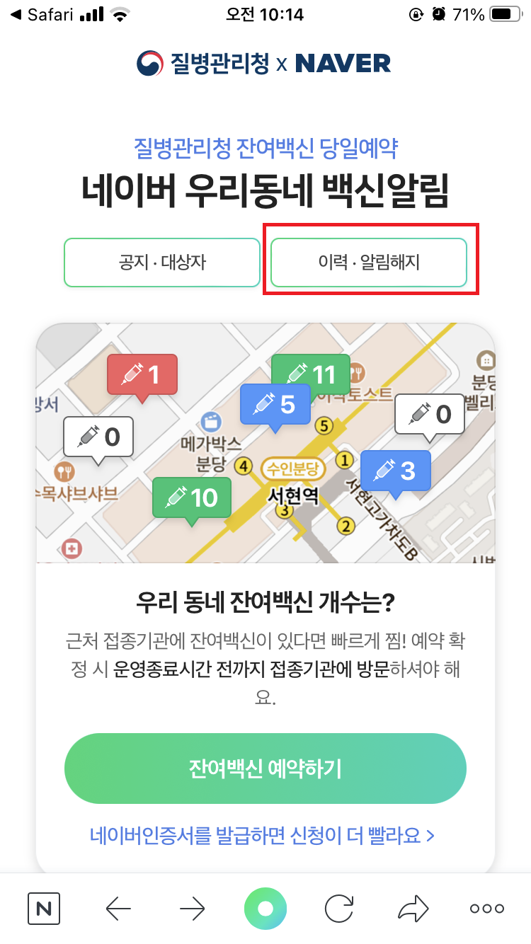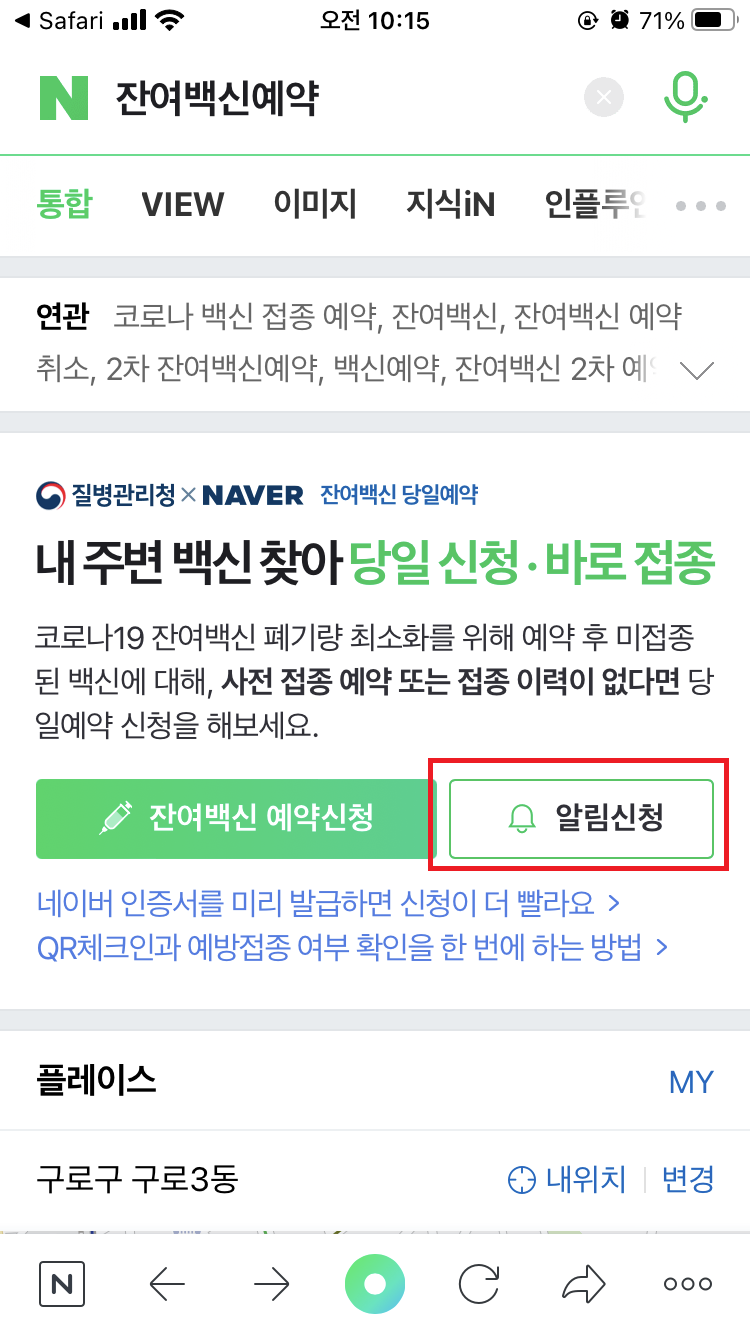 다시 네이버 잔여 백신 신청 사이트 들어가자.