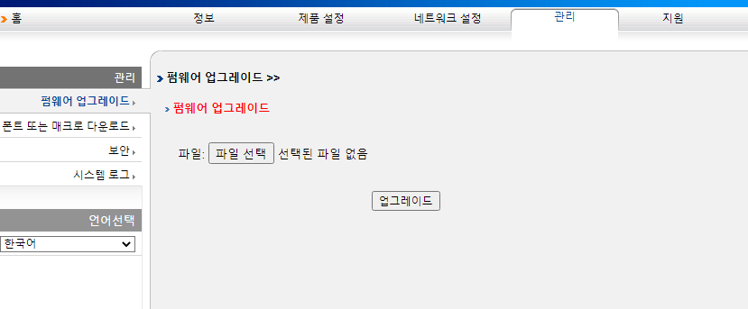 관리에 들어가보면 펌웨어 업그레이드 항목이 있다.