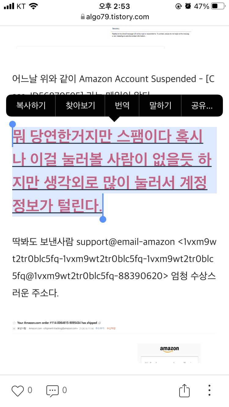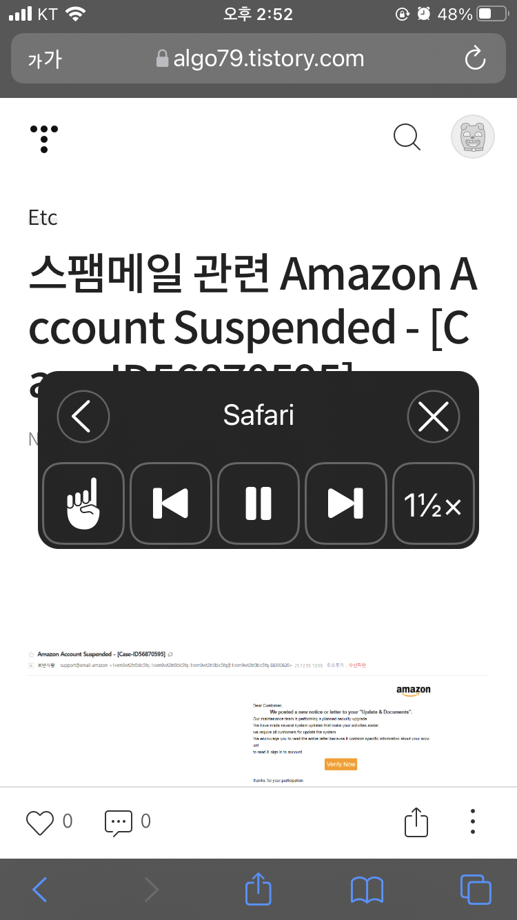 | 스팸메일 관련 Amazon Account Suspended - [Case-ID56870595] (0) | 2021.12.15 |