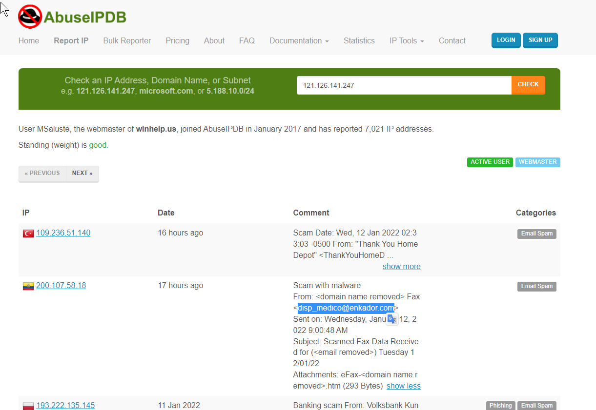 AbuseIPDB - IP address abuse reports - Making the Internet safer, one IP at a time