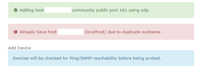 위와 같이 librenms 등록 할때 hostname 이 중복으로 잡혀서 등록이 안되는 경우가 있다.