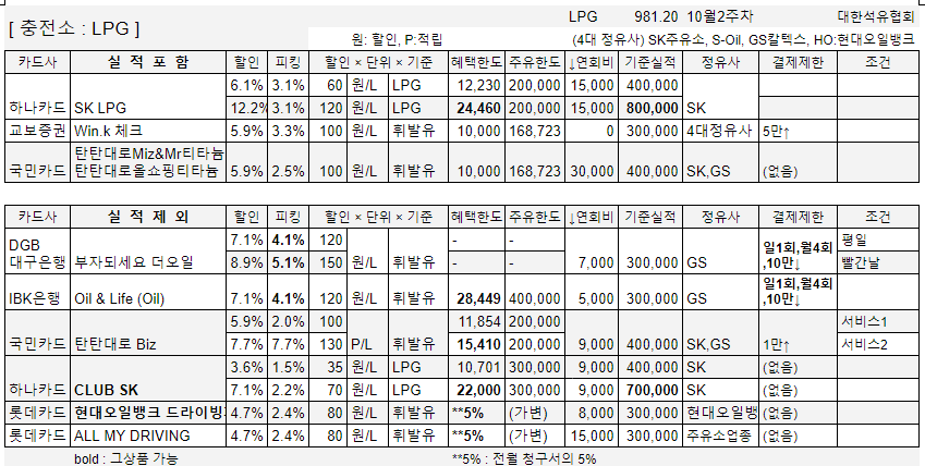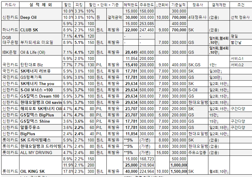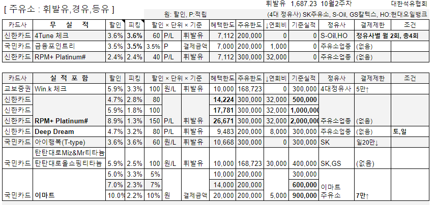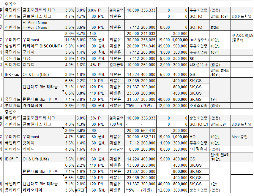 주유 & 충전 카드 정보 이다. 21년10월2주차