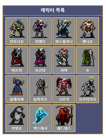해금 조건들이 있다 조건에 맞게 게임을 하게 되면 해금이 되어 케릭터들을 사용 할 수 있다.