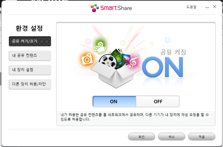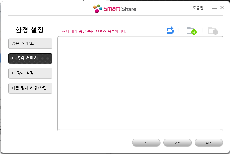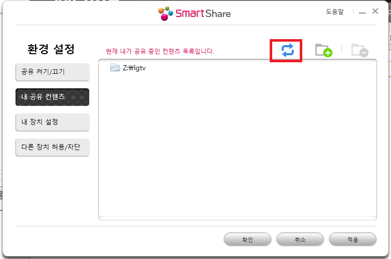 LG TV는 Smartshare 라는 프로그램을 지원 하고 있어
