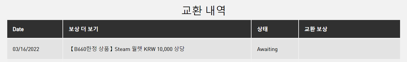 상태가 waiting 약 1~2시간 후면 포인트 차감되면서 스팀 1만원 월렛을 받을 수 있다.