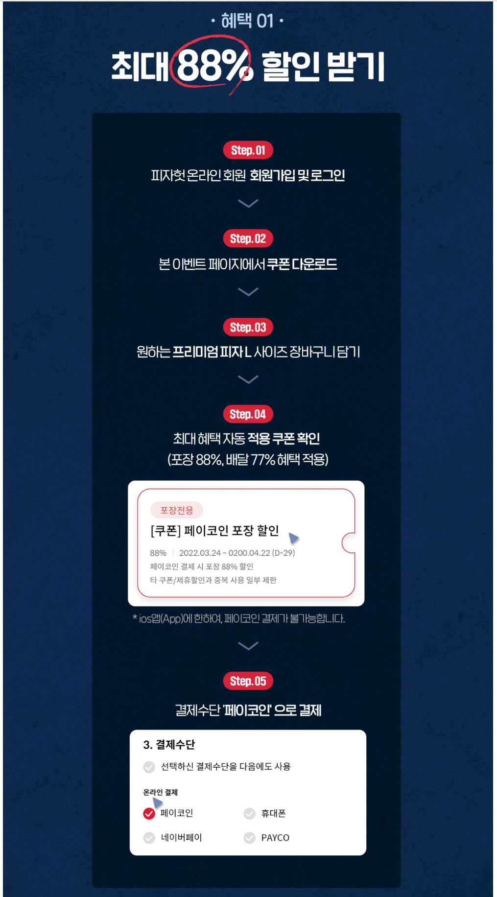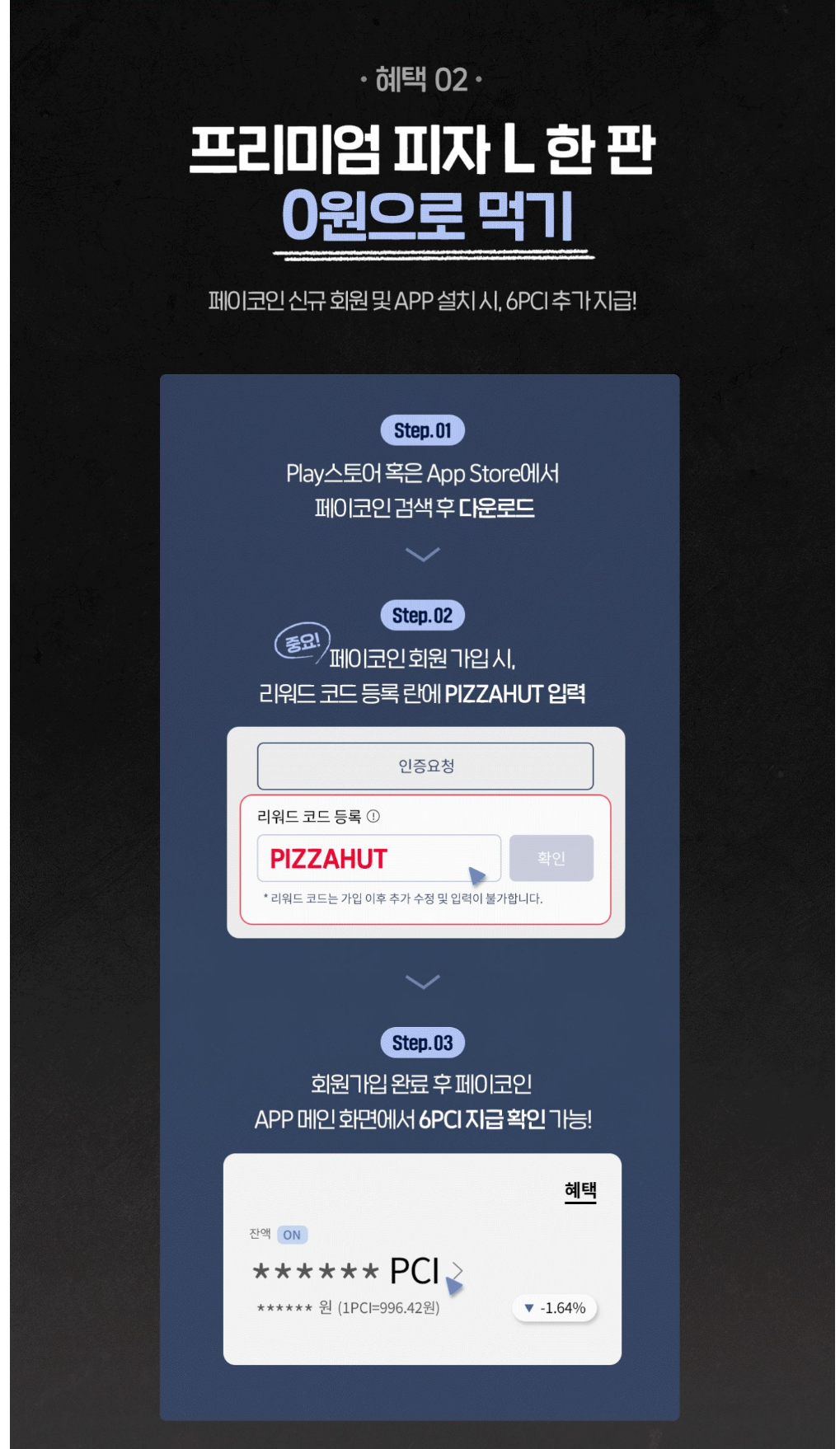 피자헛 포장 88% 배달 77% 할인 페이코인 6개 지급 이벤트 하고 있다.