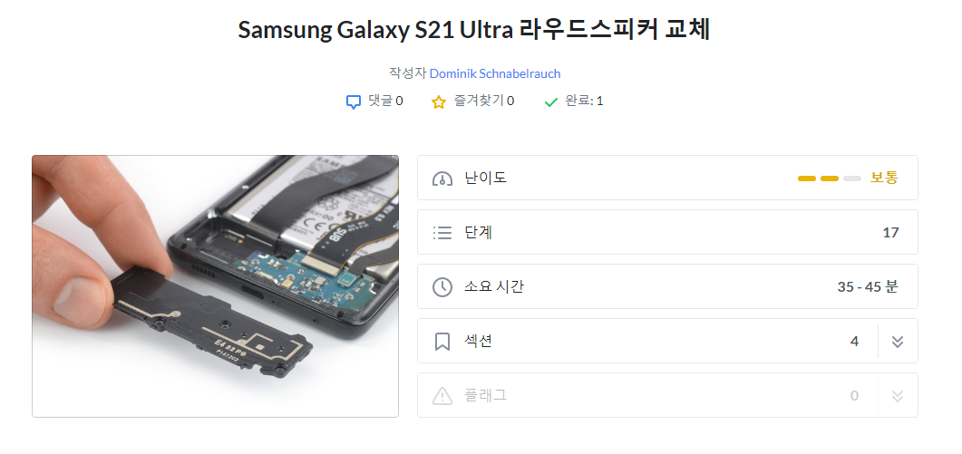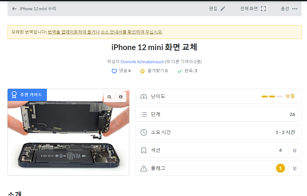 수리 난이도 단계 소요시간등 세부적으로 나와 있다.
