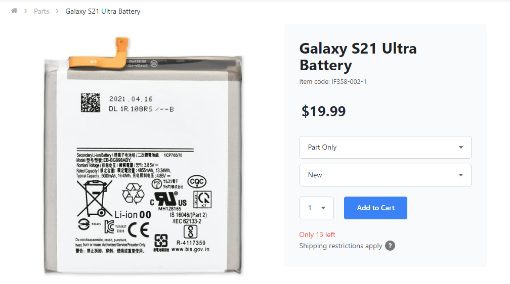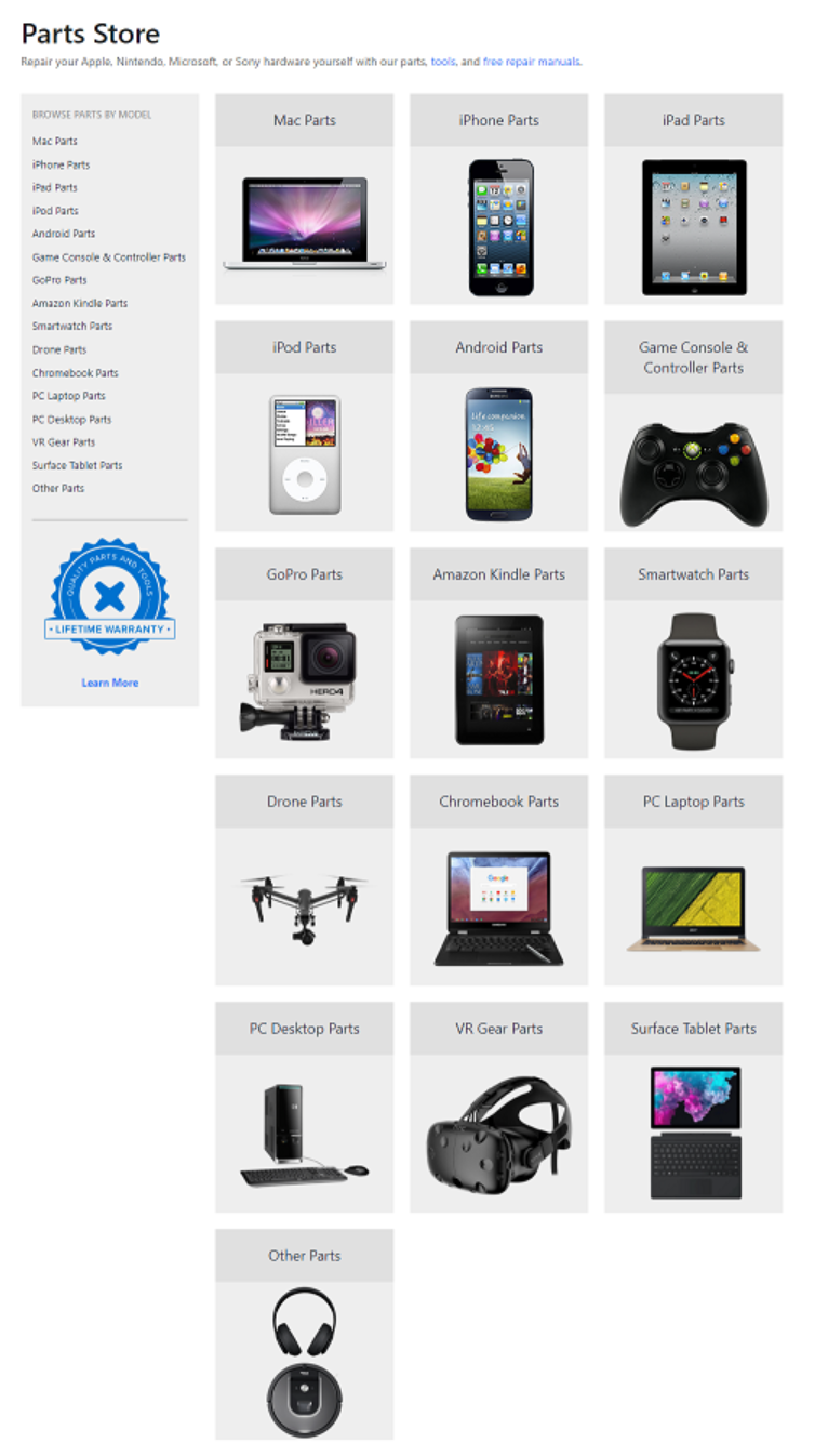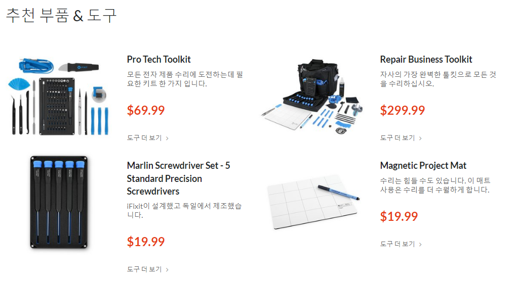 수리에 필요한 부품도 판매 한다. 저렴한지 잘 모르겠다.