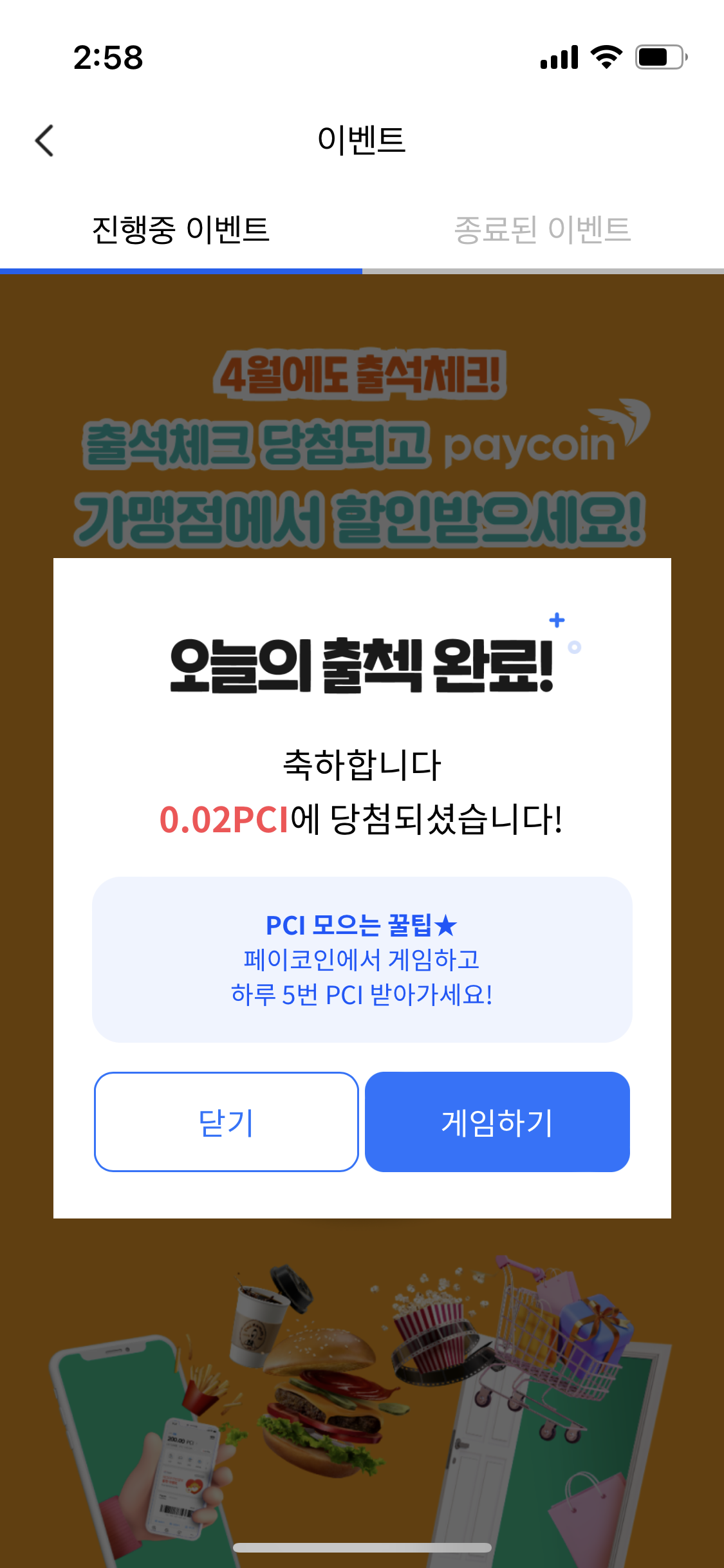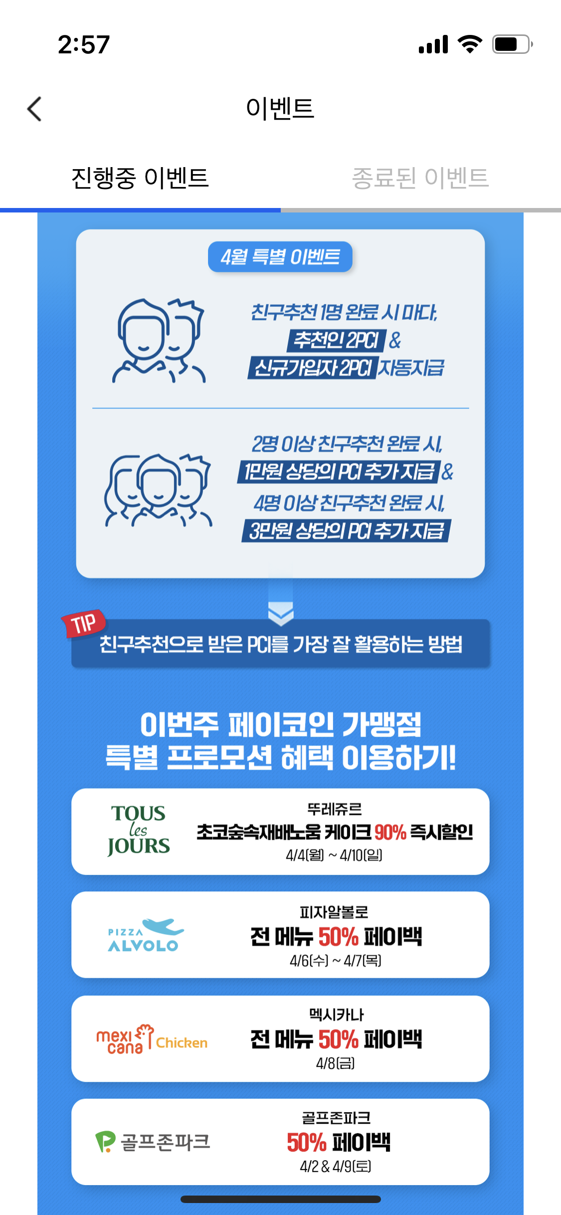추천으로 받은 페이코인으로 4월 4일부터 4월 10일까지