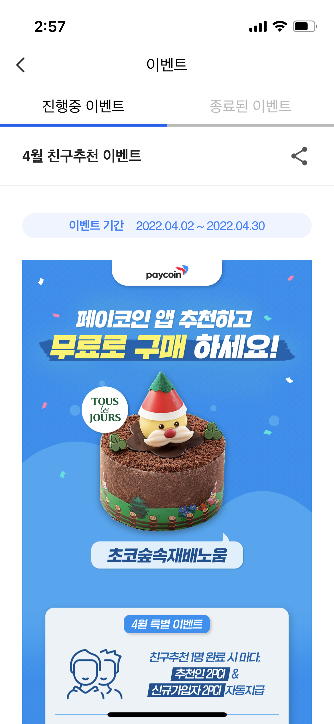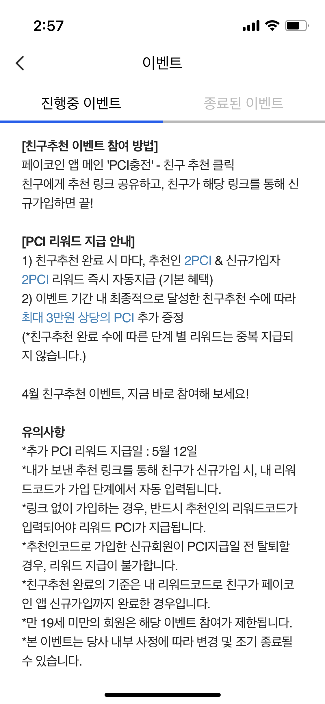 이벤트 조건은 추천인 코드로 페이코인 가입을 하면 된다.