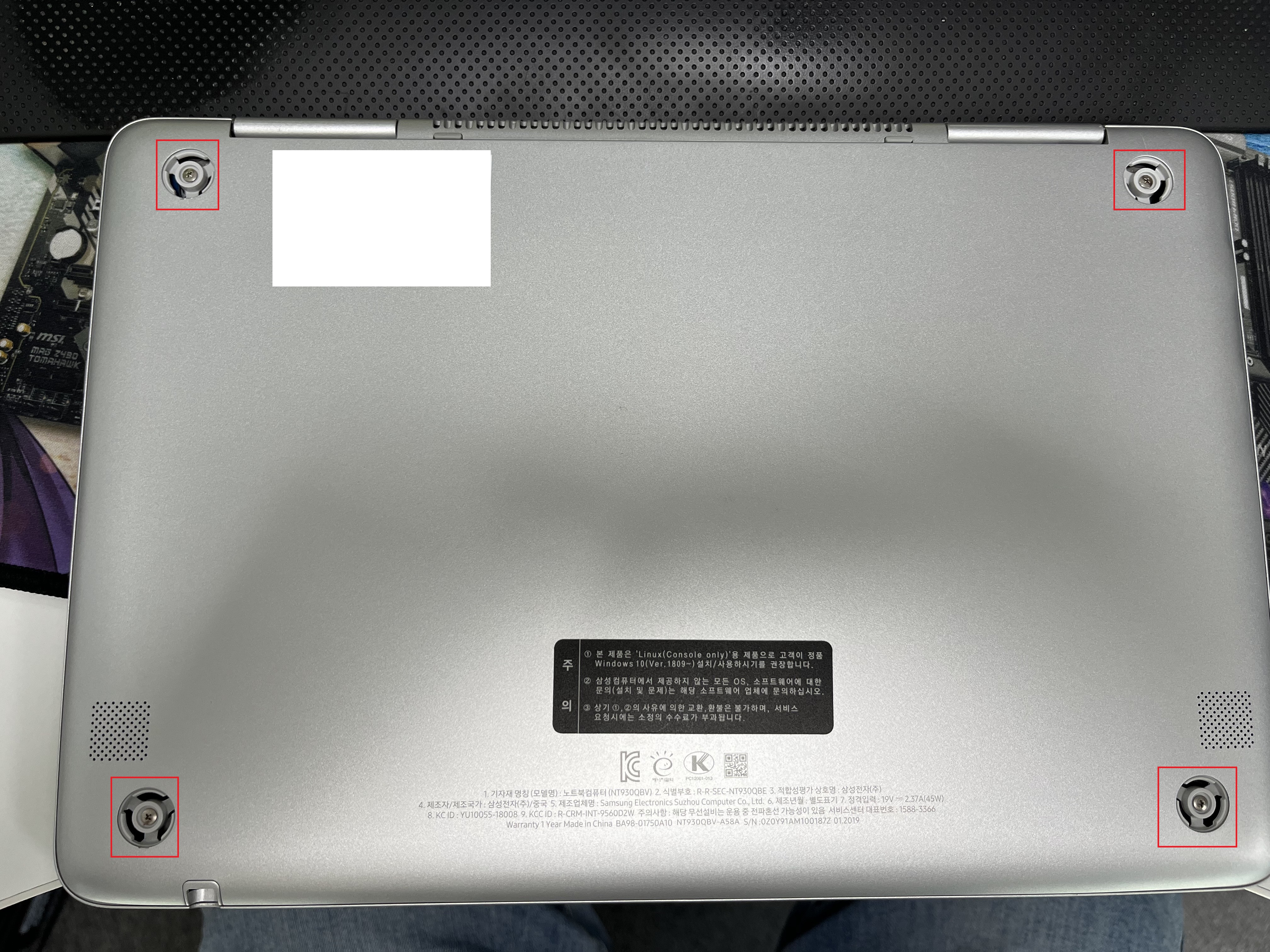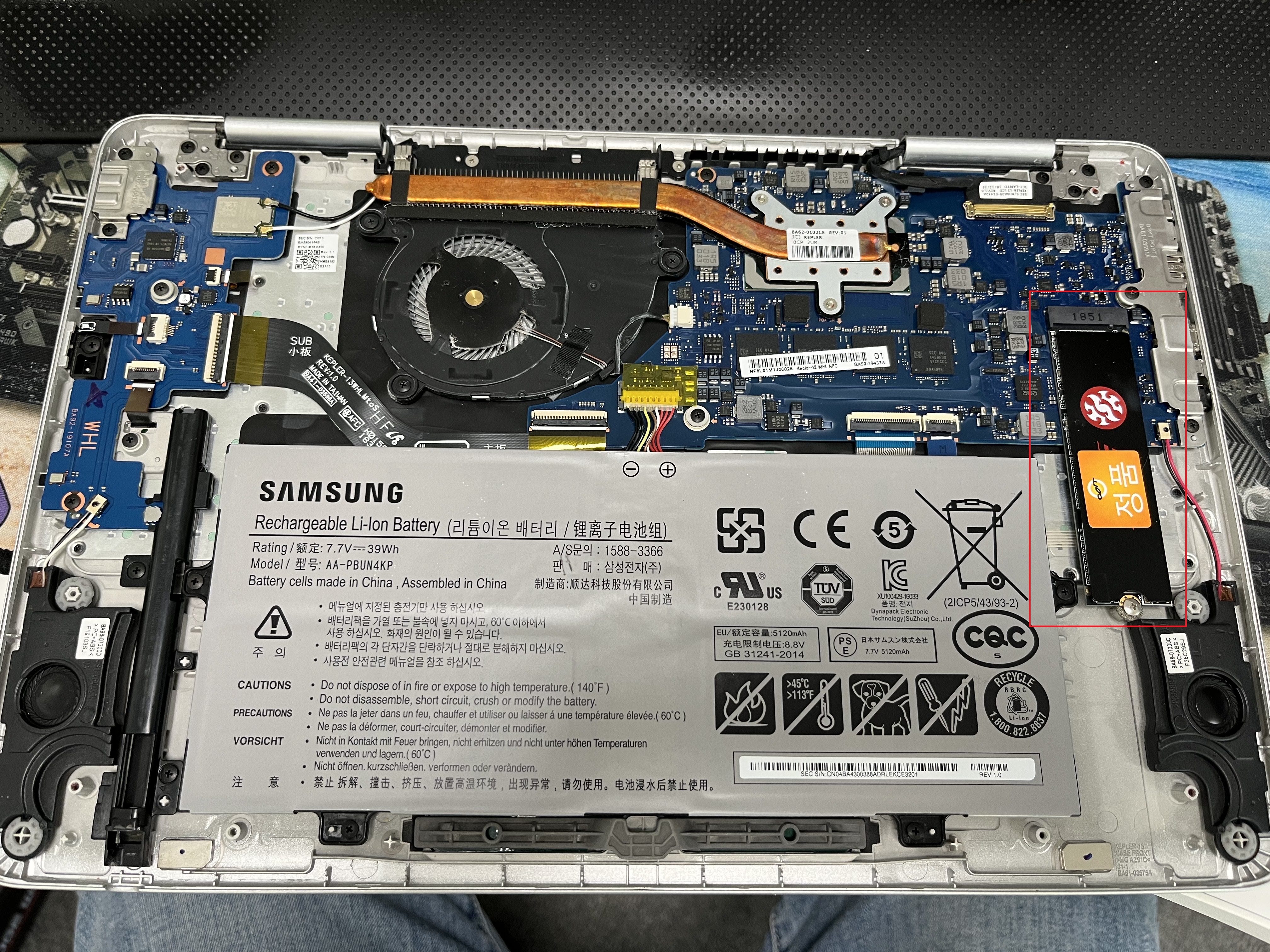 문제의 SSD가 저기 에 있다 m.2 2280 모델이다 새로운 SSD 로 변경해주고