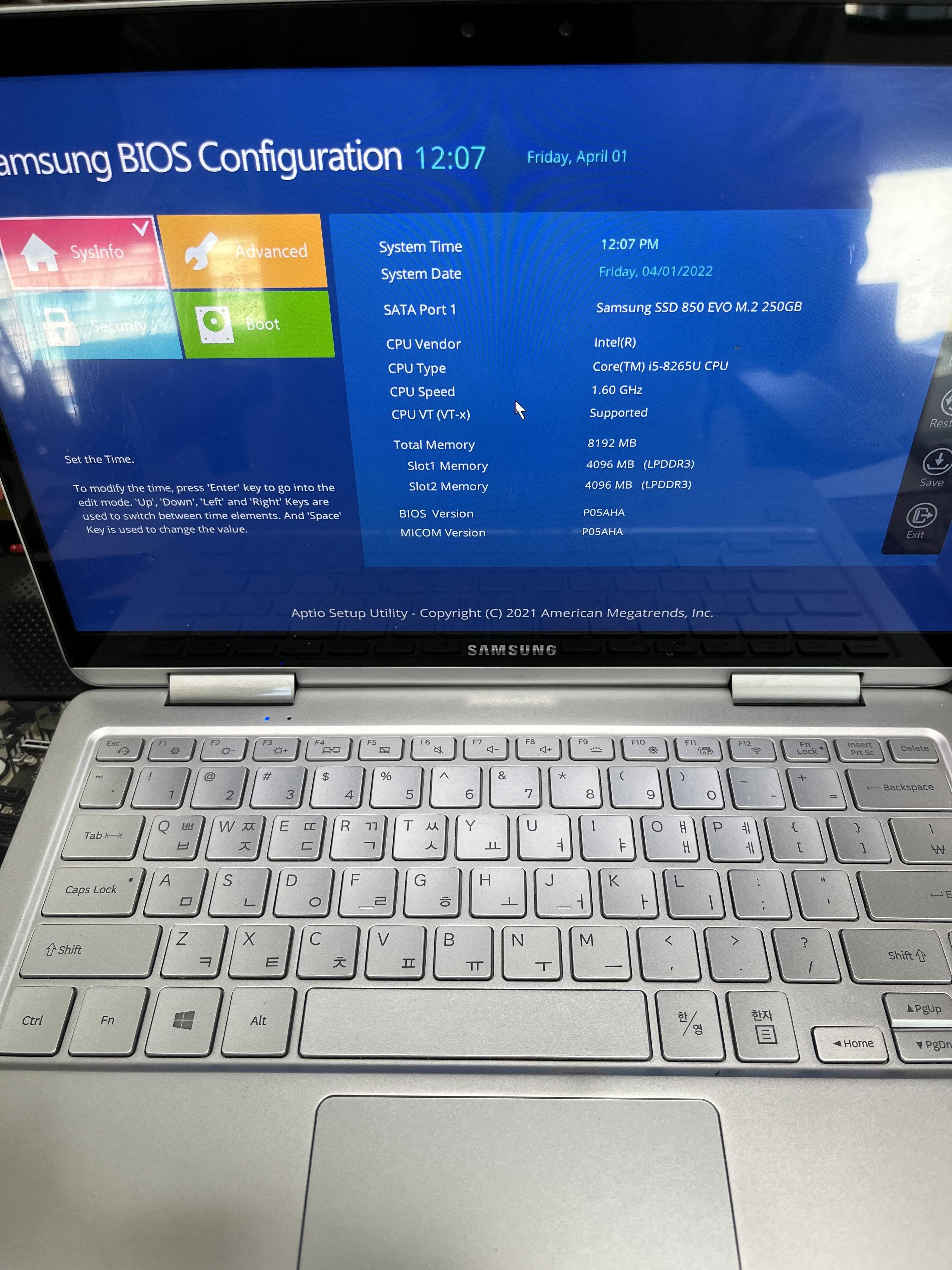 어느날 갑자기 삼성 노트북(NT930QBV-A58A)이 부팅이 안된다.