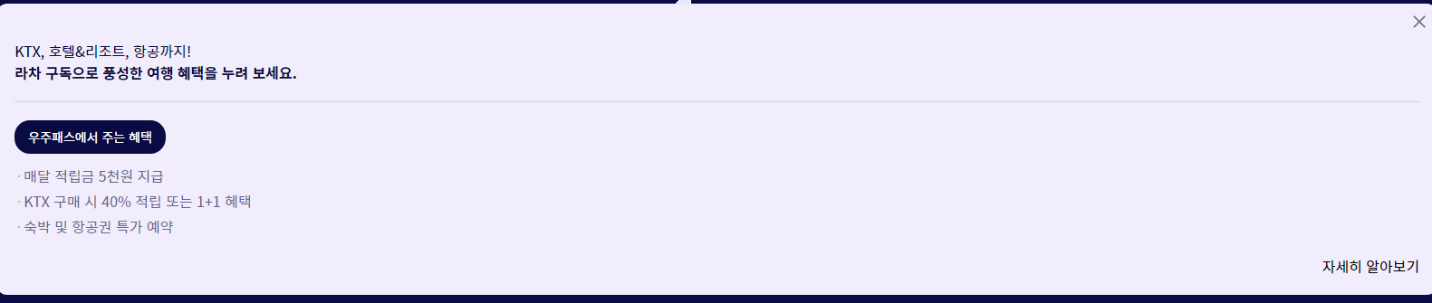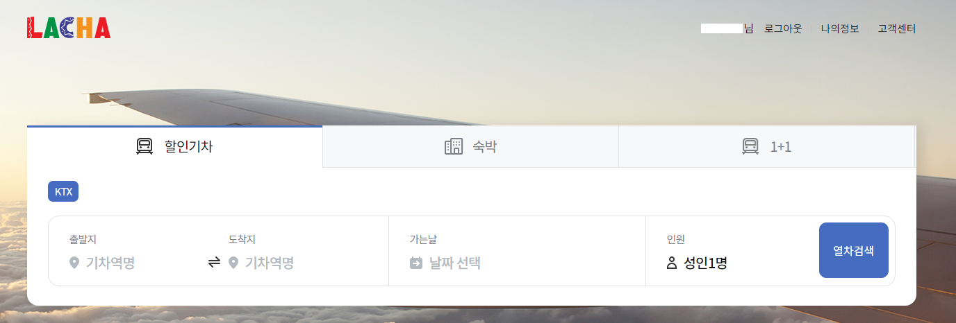 가입을 하고 로그인을 하면 위 페에지가 나오고 할인 기차 숙박 1+1등의 혜택을 받을 수 있다.
