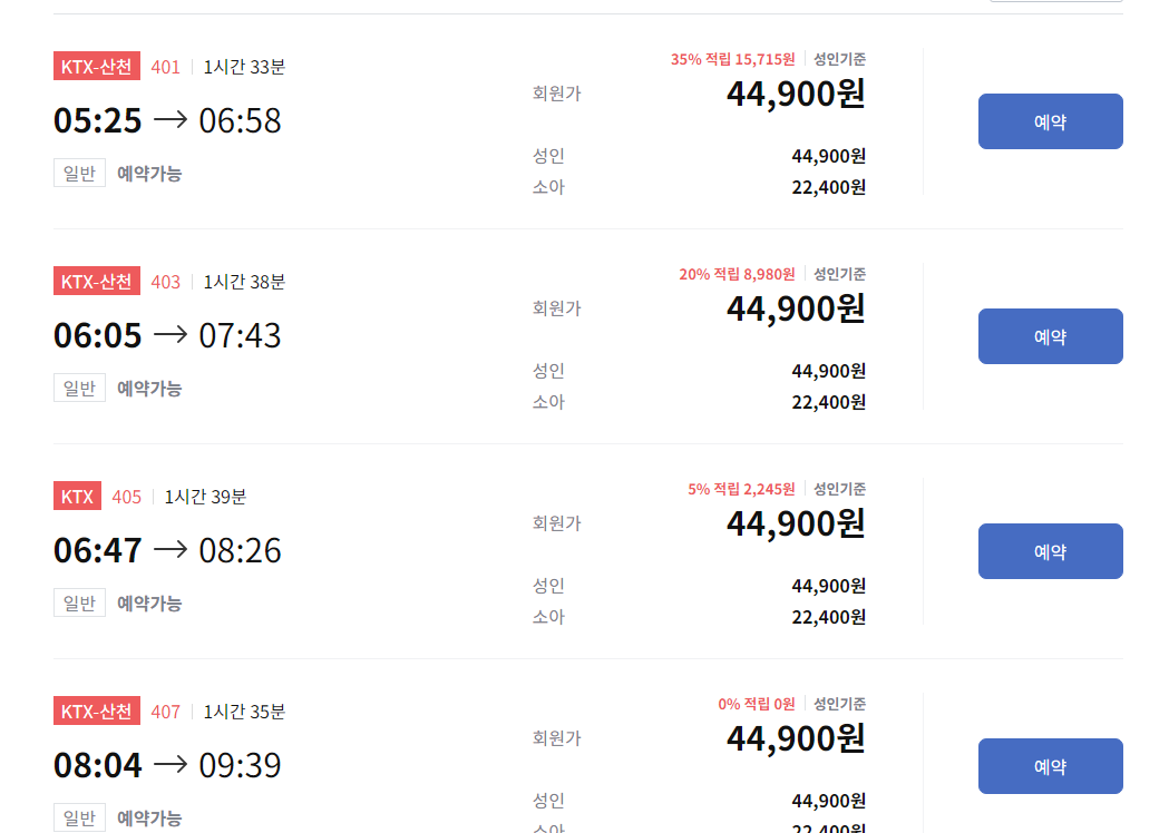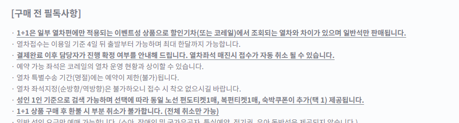 할인기차나 1+1 같은 경우 미리 예매를 해야 혜택을 받을 수 있다.