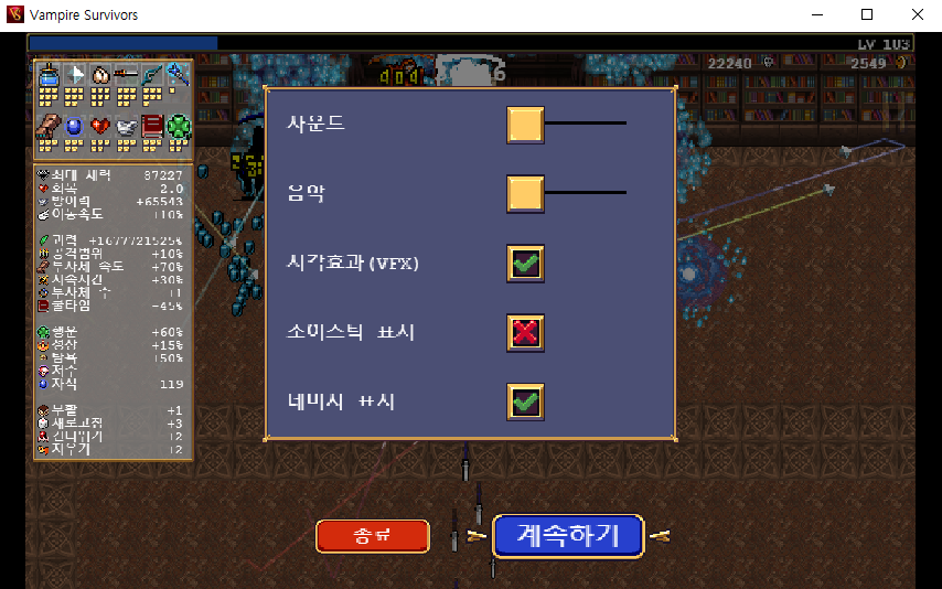 | 뱀파이어 서바이버즈(Vampire Survivors) 뱀파이어 서바이벌 0.3.2 패치로 변경된점 (0) | 2022.03.27 |