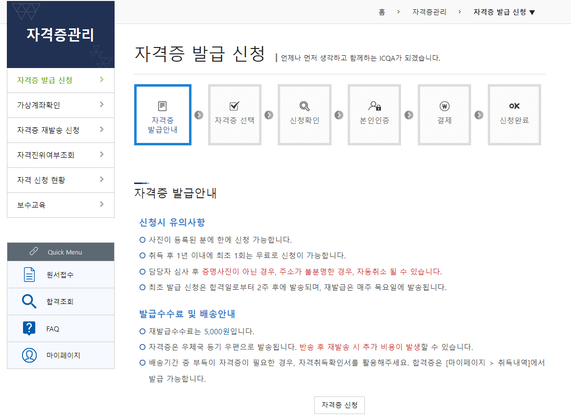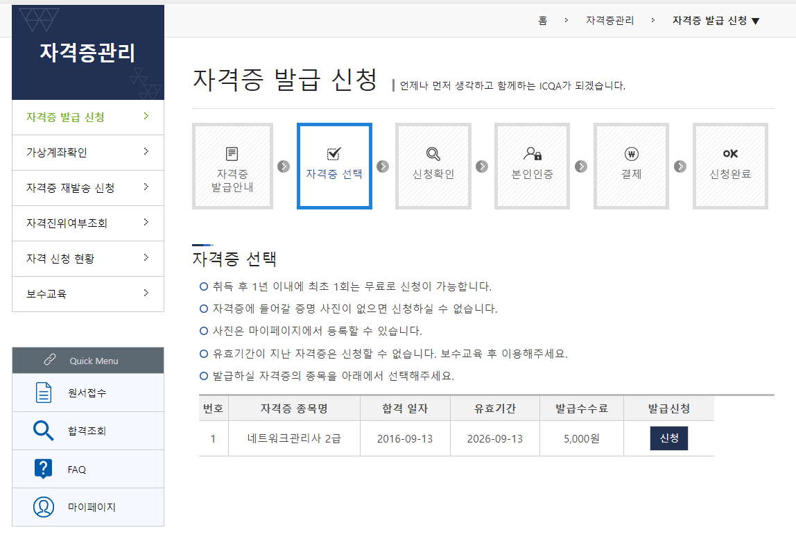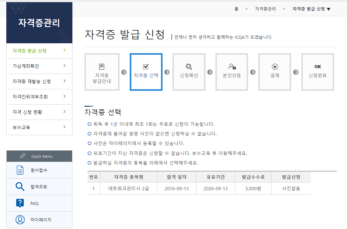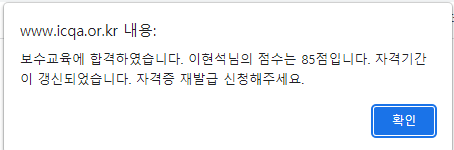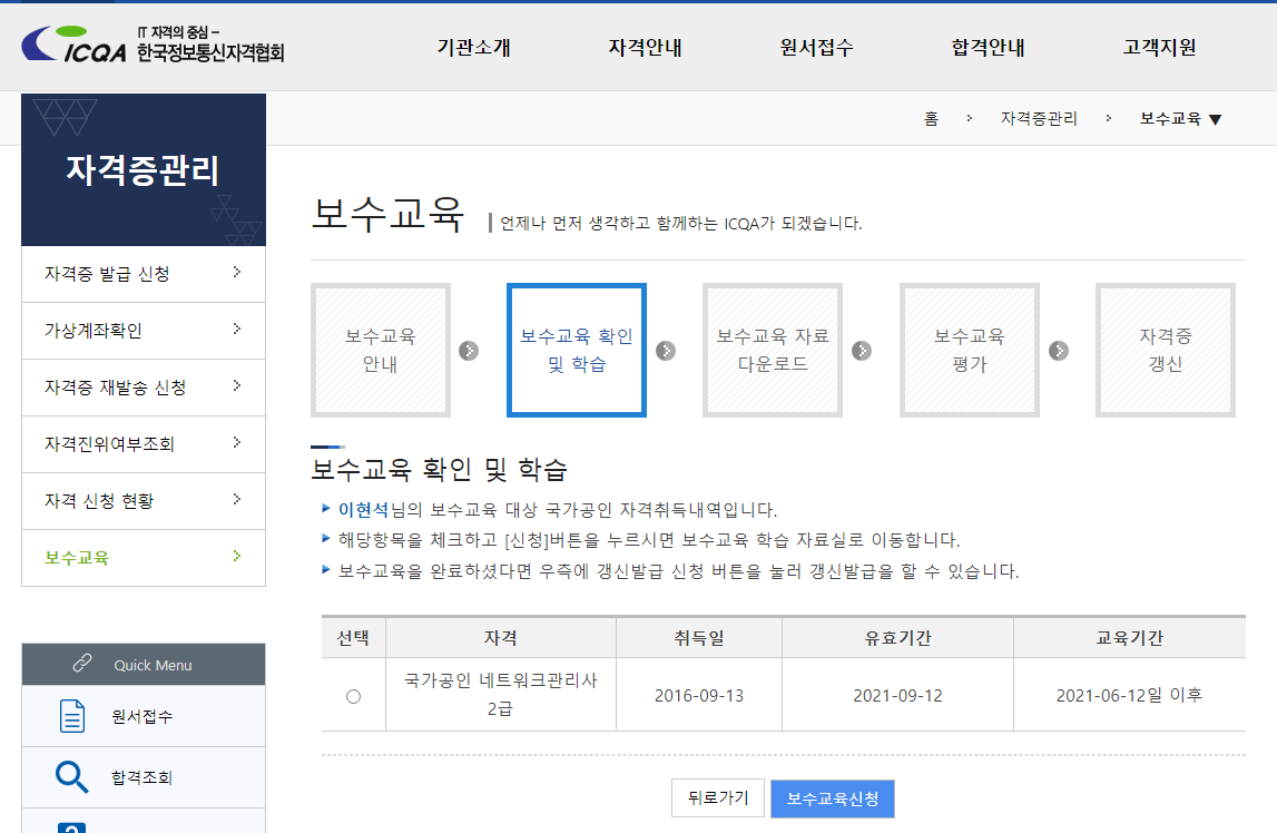 자신의 자격증이 나온다 난 21년 9월에 만료가 되었다.