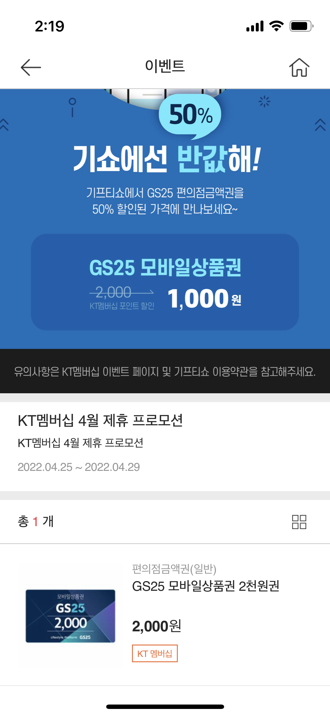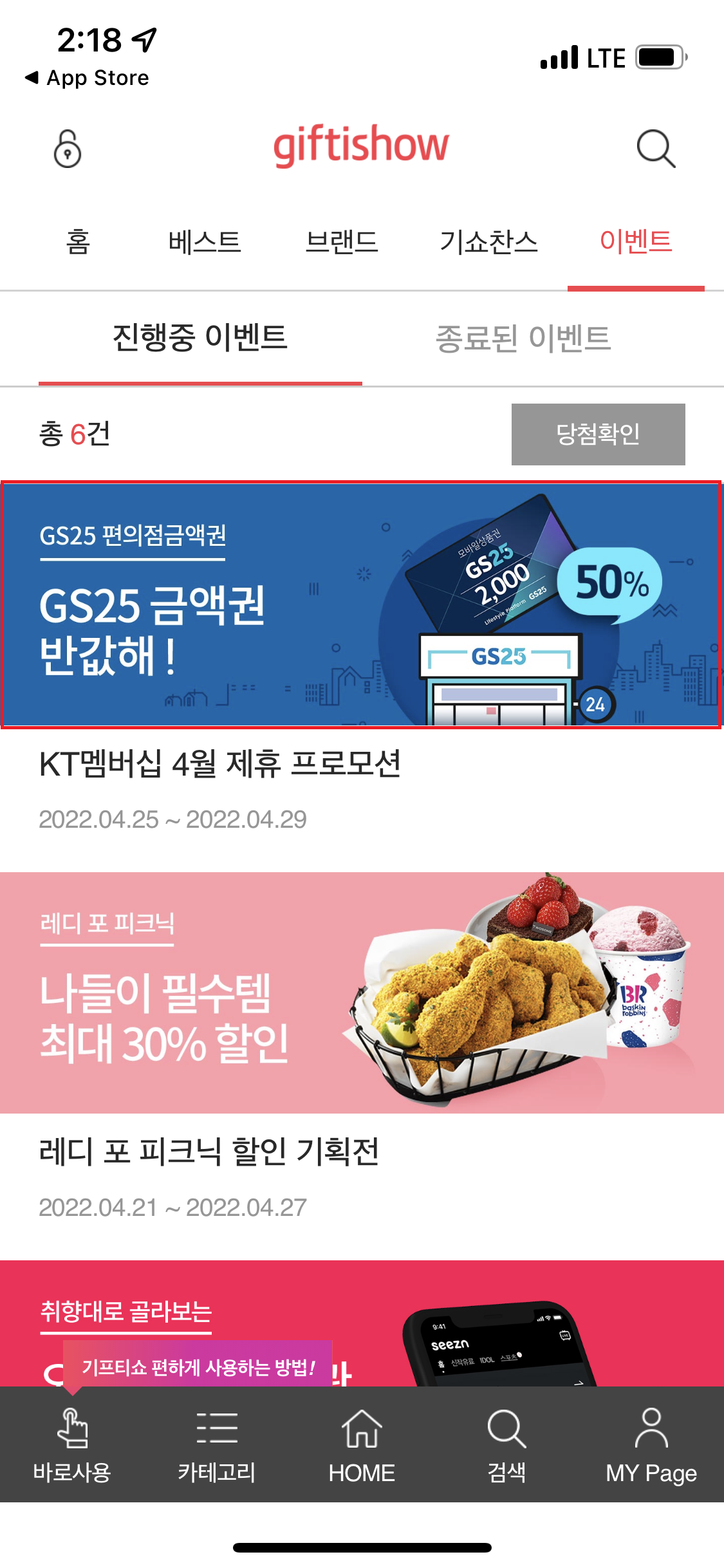 giftishow 이벤트 gs25 상품권 50% 구매 할 수 있는 이벤트 한다.