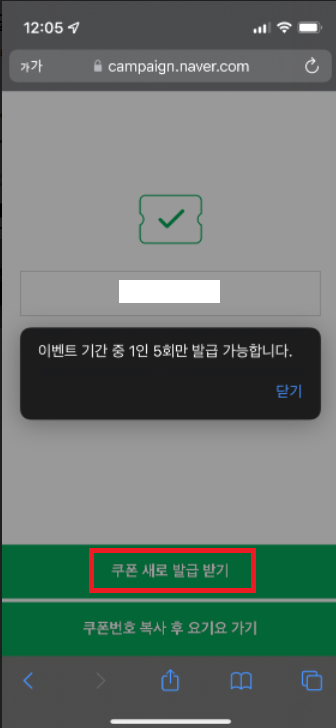 쿠폰 새로 발급 받기 누르면 기존에 발급 받은 쿠폰 번호가 사라지니 적어 놓던가 쿠폰 등록 후 쿠폰 새로 발급 받기를 누르자.