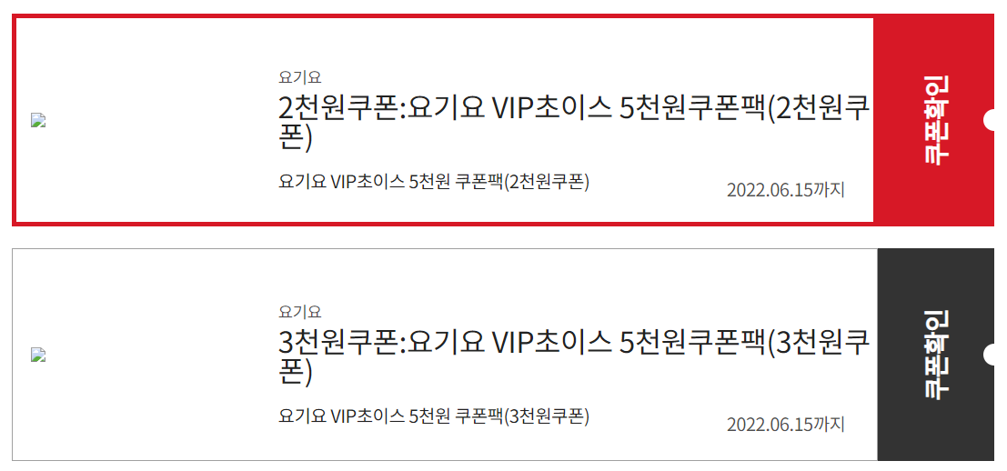 아래 들어가서 쭉 내리다 보면 요기요 쿠폰이 있다.