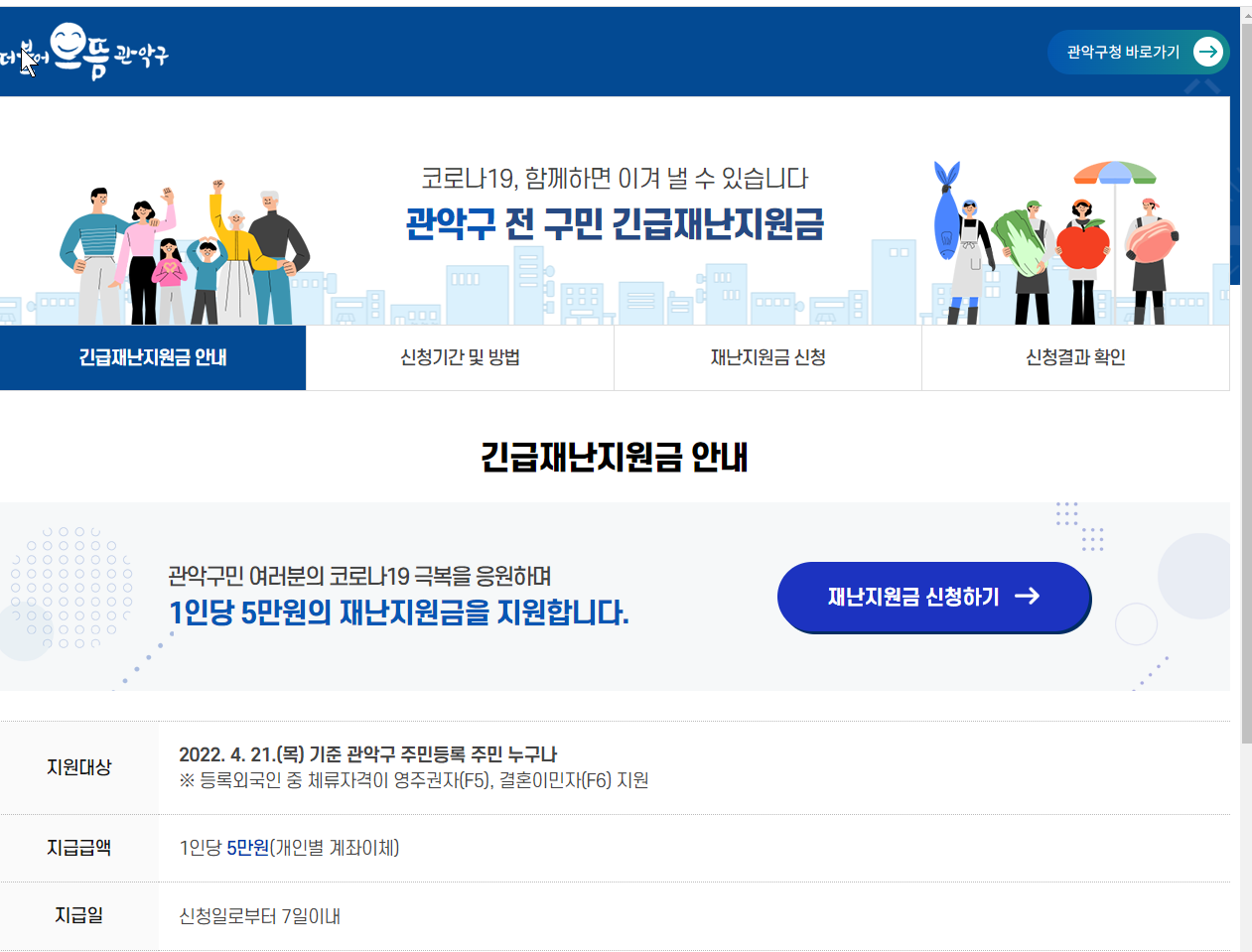 관악구청 - 긴급재난지원금 신청·접수