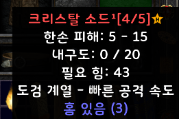 아직 고뇌버그(?) 가 정상적으로 작동 된다. 반대쪽 무기에 내구도 0 무기를 장착하면 쌍 무기 효과가 나타난다.