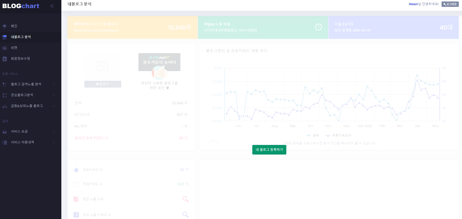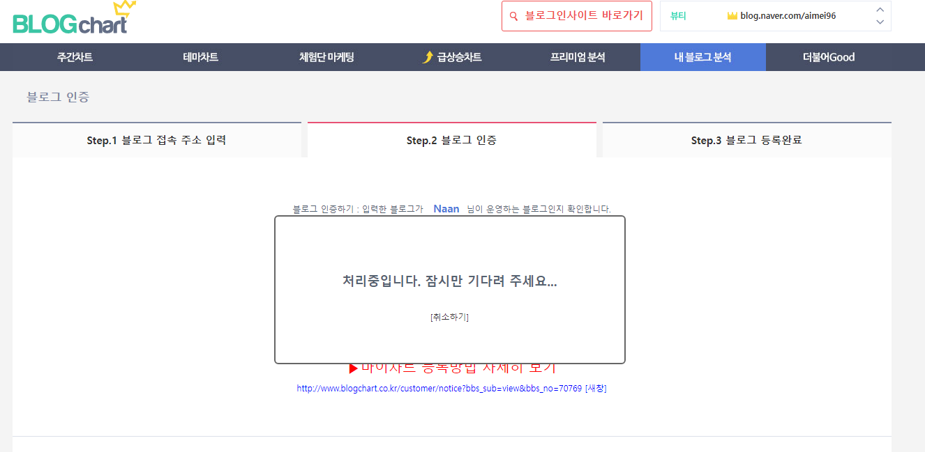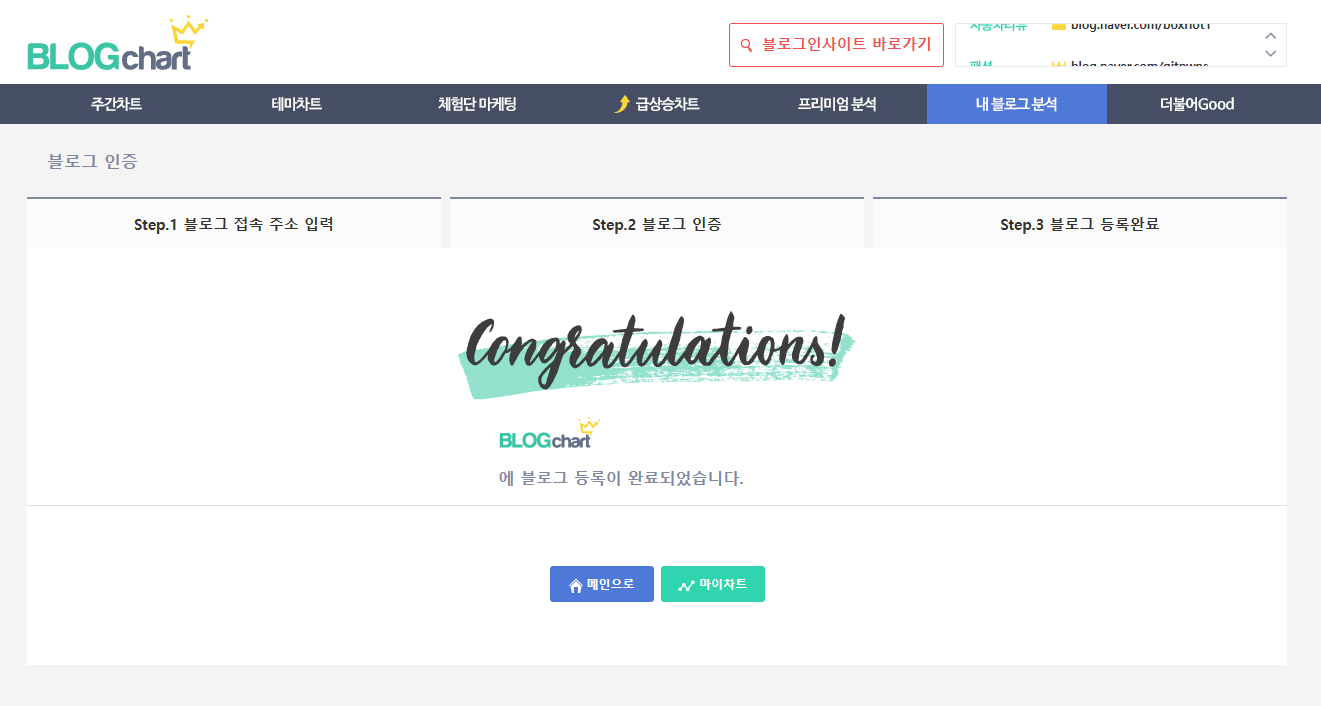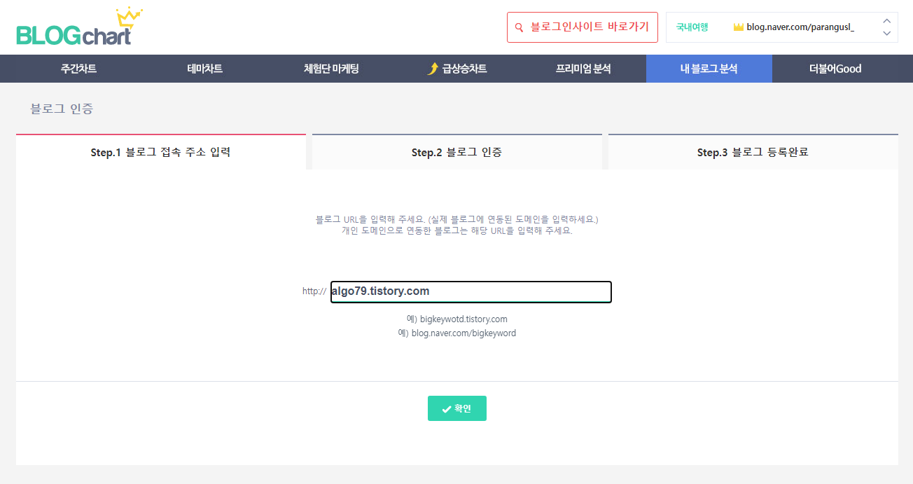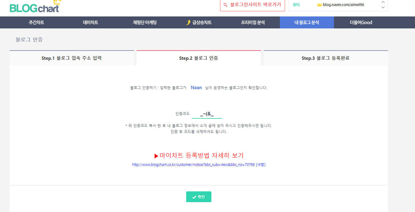 블로그 차트라는 사이트를 발견 순위를 확인 하려면 가입을 해야 한다.