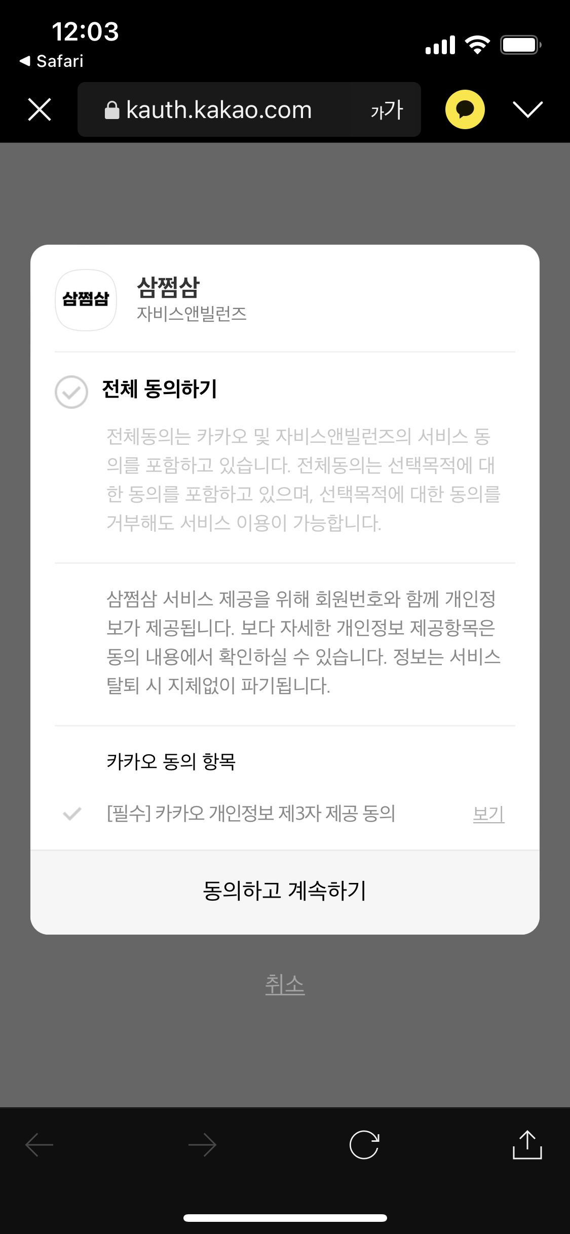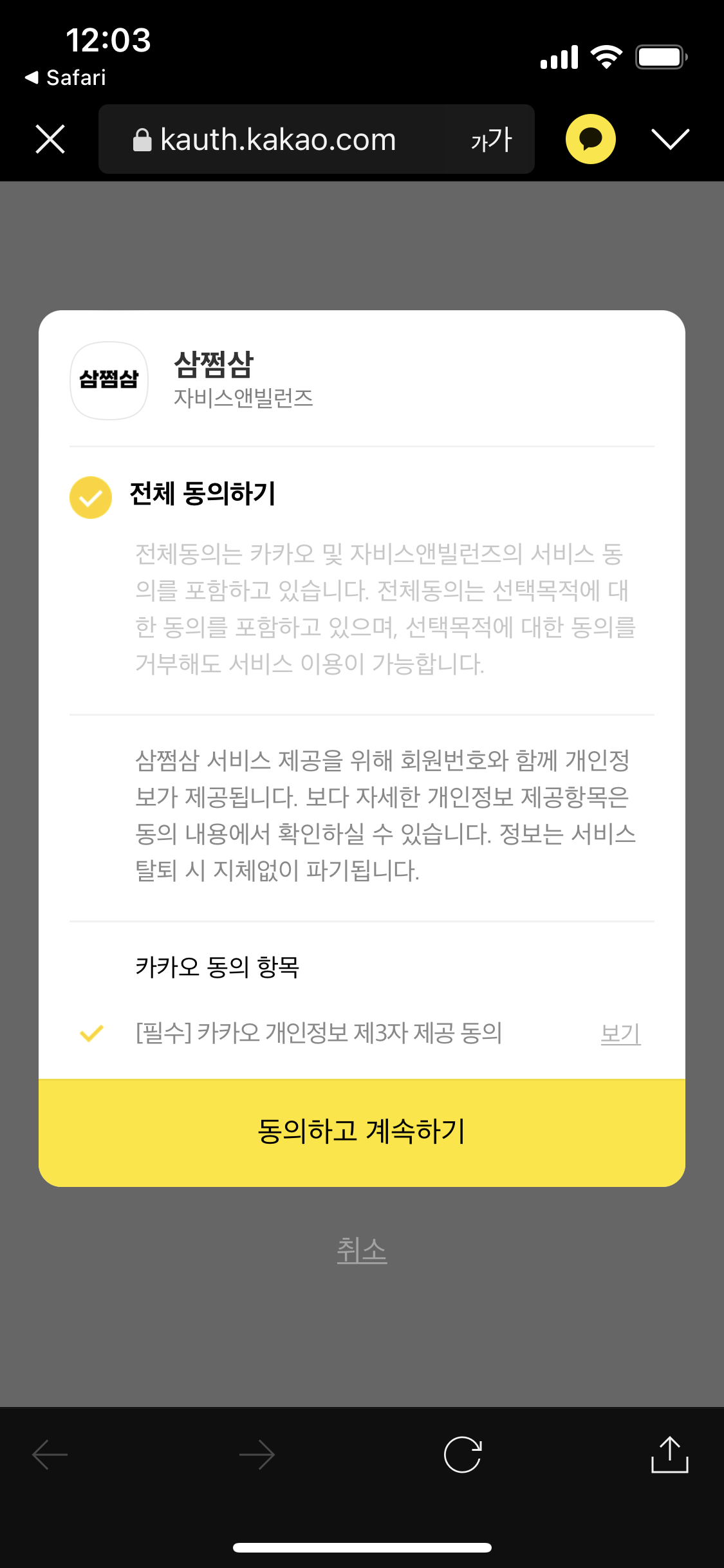계정 연동은 카카오계정 밖에 없다 카카오계정으로 계속 하기 누르자