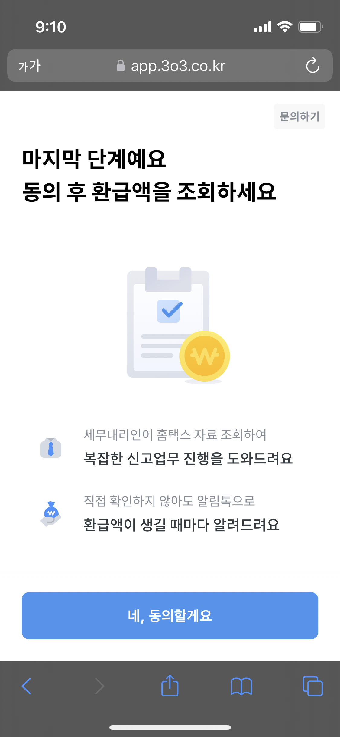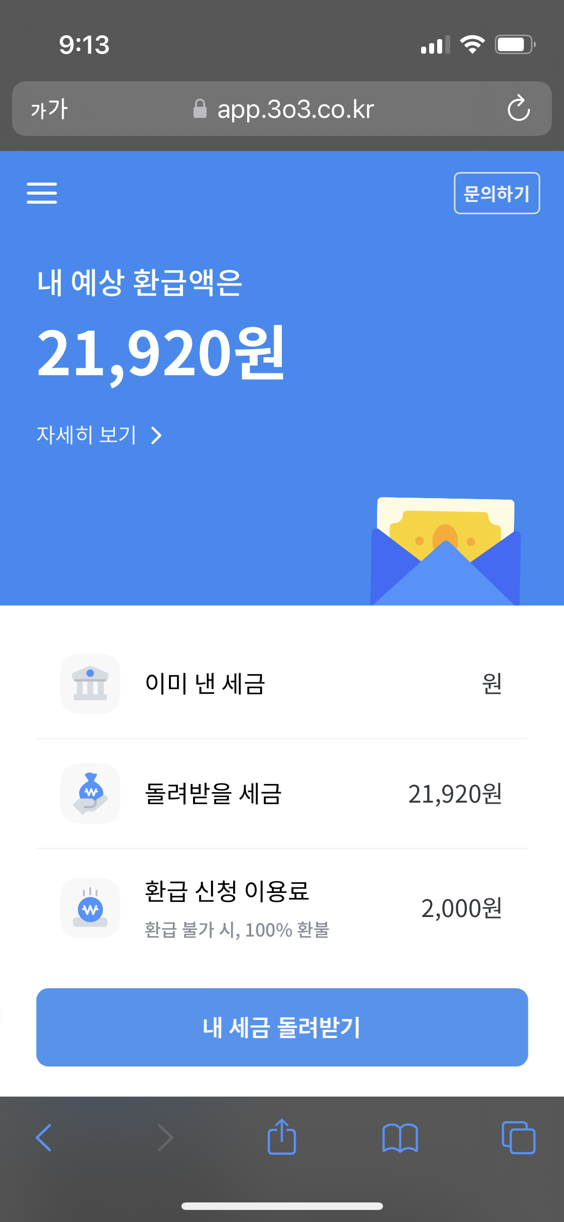 시간도 없고 그냥 수수료내고 받을 생각이라면 계속 진행 하면 된다. 내 세금 돌려받기 눌러보자.