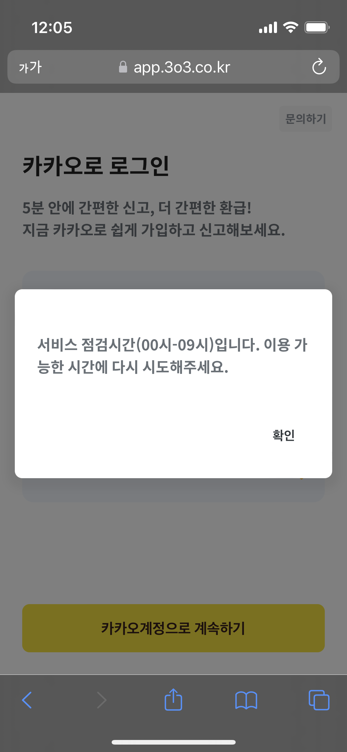 "서비스 점검시간(00시-09시)입니다. 이용 가능한 시간에 다시 시도해주세요." 라고 뜨면 다음날 오전 9시에 다시 접속 하자 보통 00시 부터 09시까지 점검하는듯 하다.