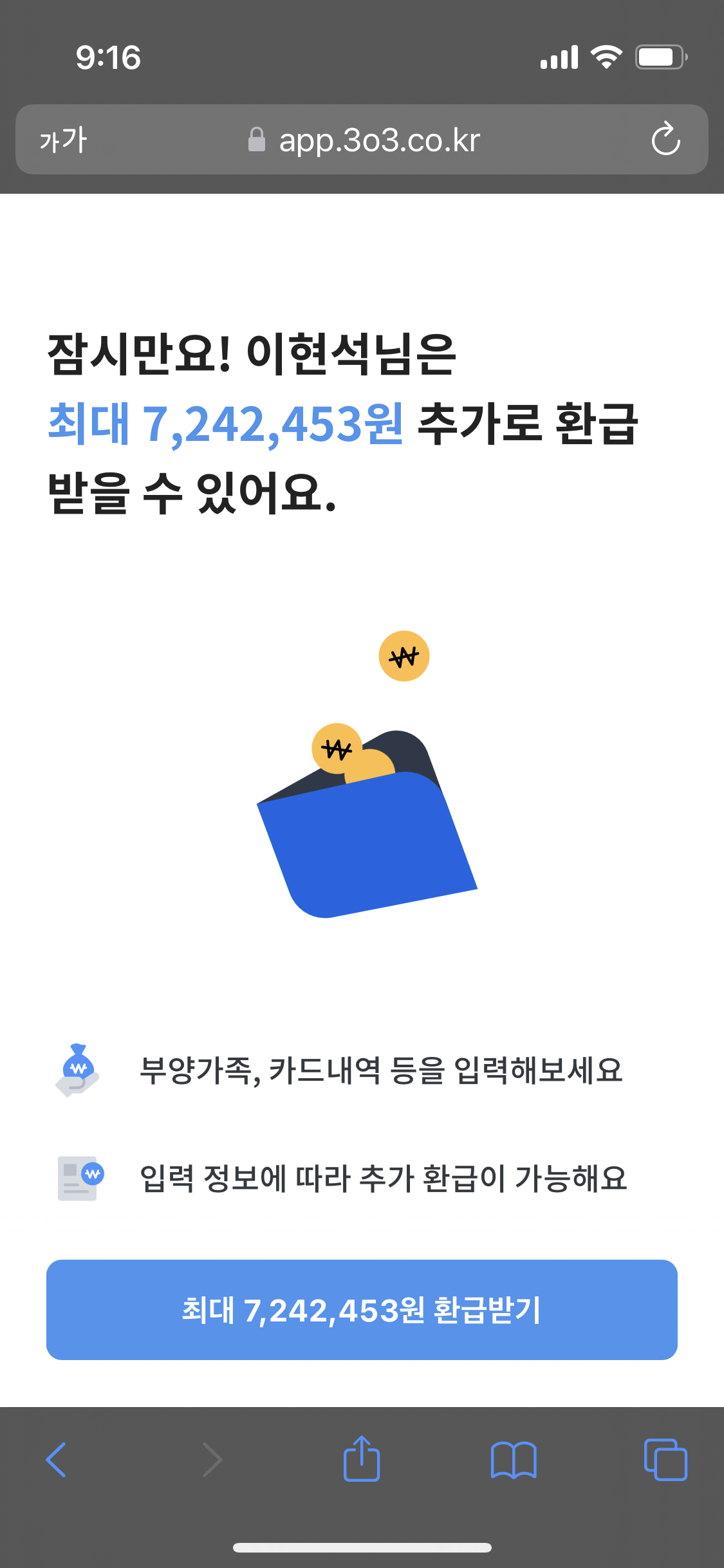응..? 2만 얼마밖에 안됐는데..? 최대 7백만원 환급 받을수 있다고? 환급 받기 눌러보자.