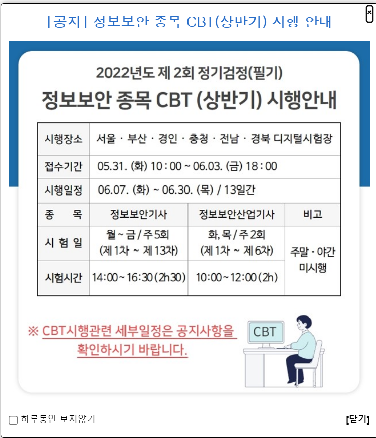 같은날 시간이 달라서 정보보안산업기사, 정보보안기사 둘다 한꺼번에 시험을 볼 수 있다.
