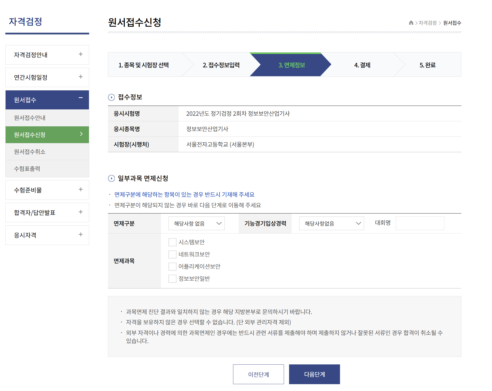 접수 정보 확인 하고 다음 단계 누르자.