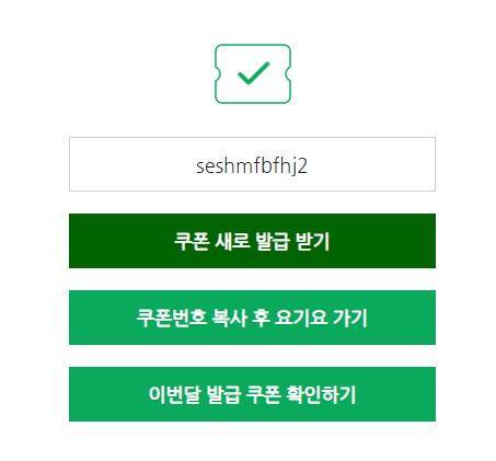 쿠폰 새로 발급 받기 누르면 기존에 발급 받은 쿠폰 번호가 사라지니 적어 놓던가 쿠폰 등록 후 쿠폰 새로 발급 받기를 누르자.